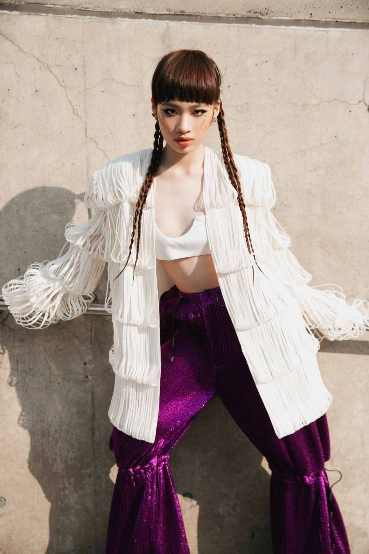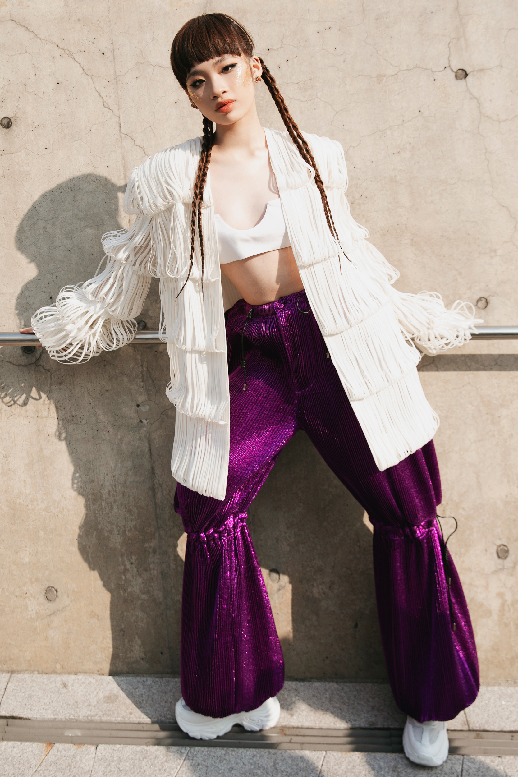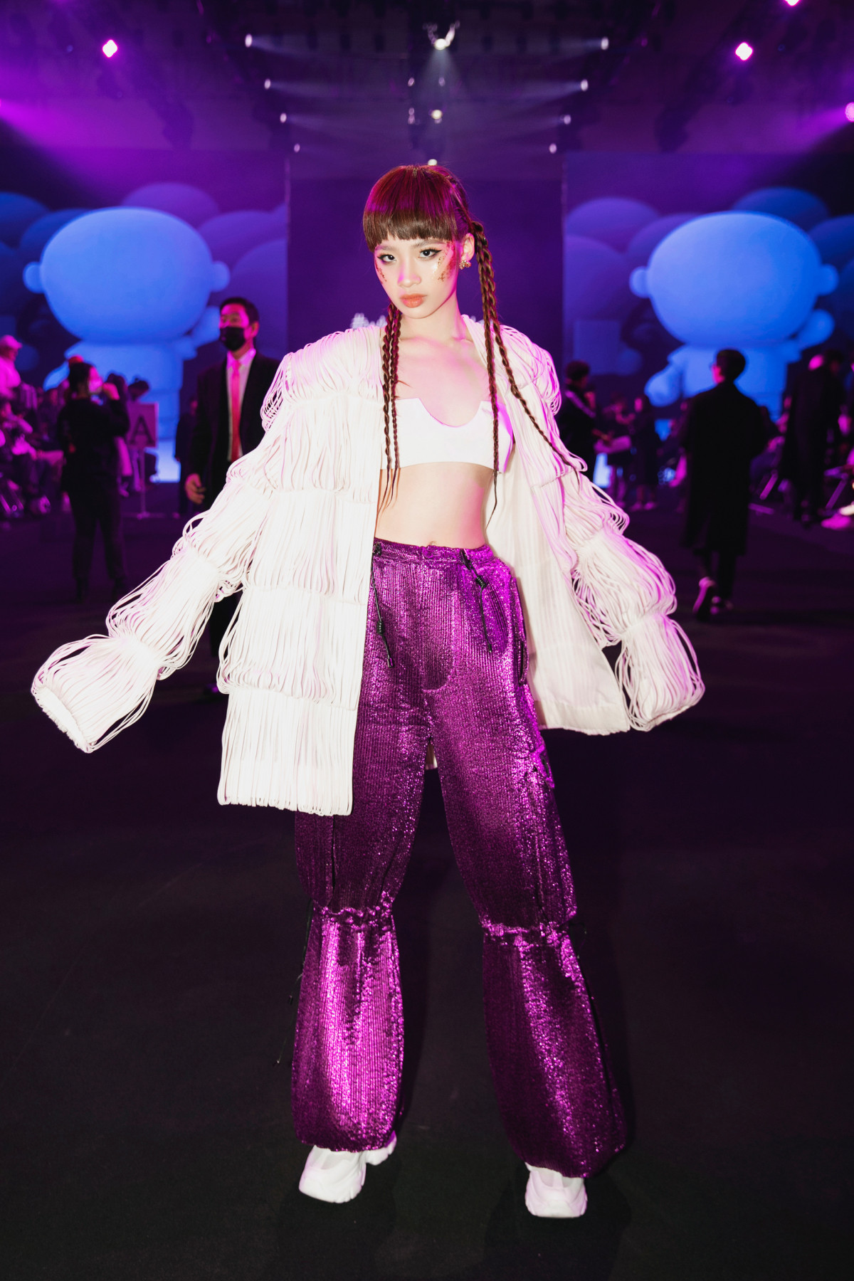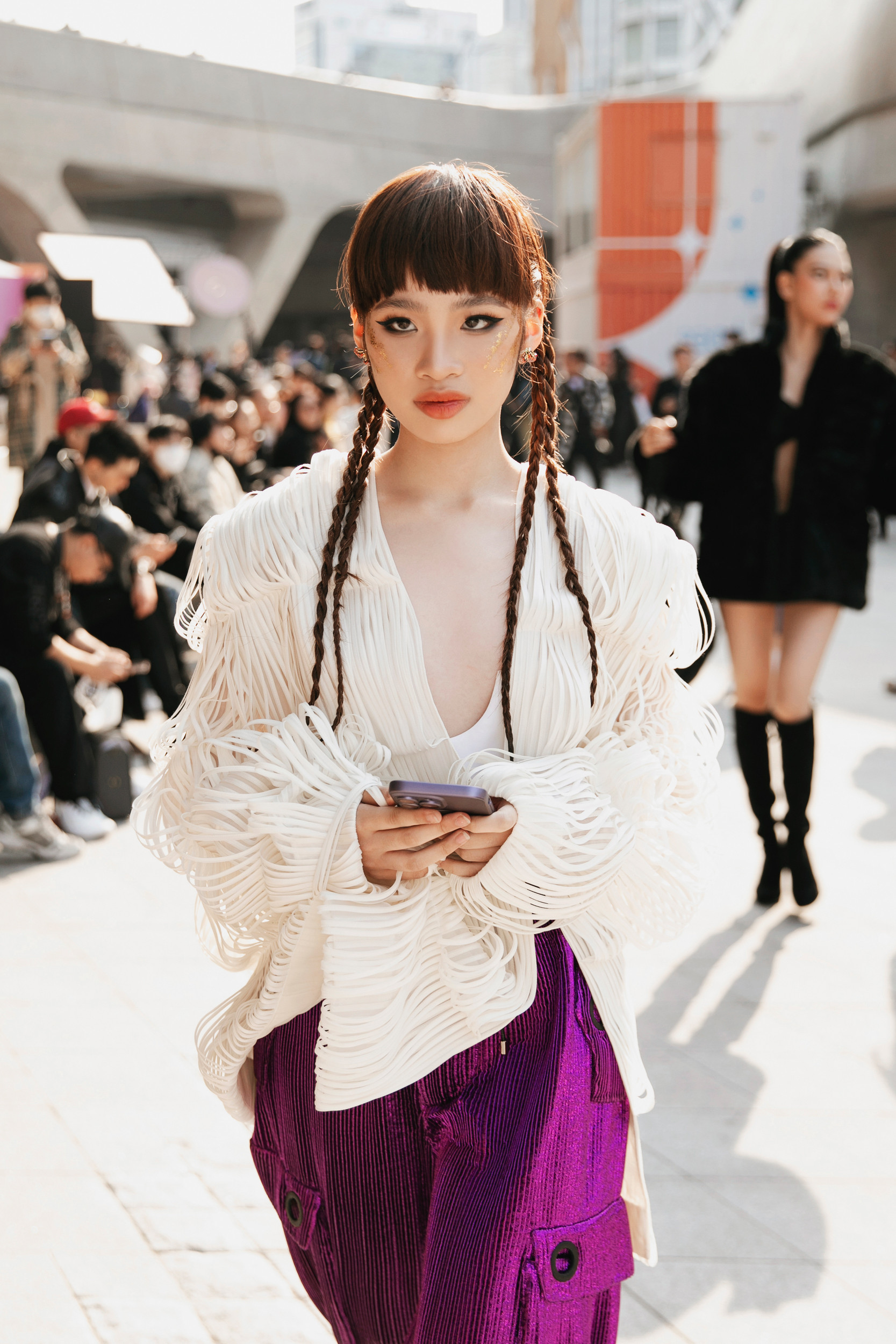 Bảo Hà được NTK Nguyễn Công Trí chọn lựa, tư vấn trang phục để xuất hiện tại sự kiện thời trang ở Hàn Quốc.Bảo Hà nổi bật trong bộ jumpsuit đính kết tua rua tỉ mỉ. Mẫu nhí khoe được vóc dáng mảnh mai, thần sắc sang chảnh khi xuất hiện tại sự kiện.Phần ngực của bộ trang phục được cắt xẻ táo bạo, giúp Bảo Hà khoe trọn bờ vai thon. Mẫu nhí kết hợp cùng hoa tai to bản, đôi boots da cá tính và kiểu tóc buộc hai bên, tạo nên một tổng thể hài hòa thu hút sự chú ý của truyền thông quốc tế.Khoác trên mình bộ trang phục của NTK Nguyễn Công Trí, Bảo Hà toát lên vẻ năng động trẻ trung nhưng cũng có phần tinh nghịch, mạnh mẽ.Mẫu 14 tuổi diện áo crop top khoe eo phối áo "lồng đèn" và quần ống rộng, vừa trẻ trung vừa cá tính.
