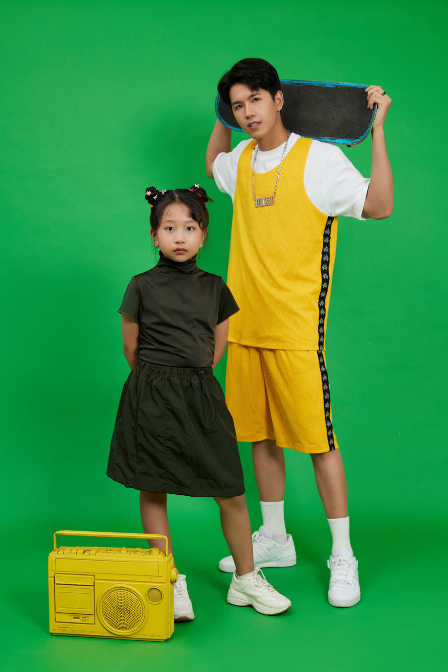 Với tinh thần thể thao đậm chất mùa hè, học trò siêu mẫu Xuân Lan - mẫu nhí Trương Ngọc Diệp tạo dáng bên cạnh Nam vương Hòa Bình Minh Kha trong bộ ảnh năng động.