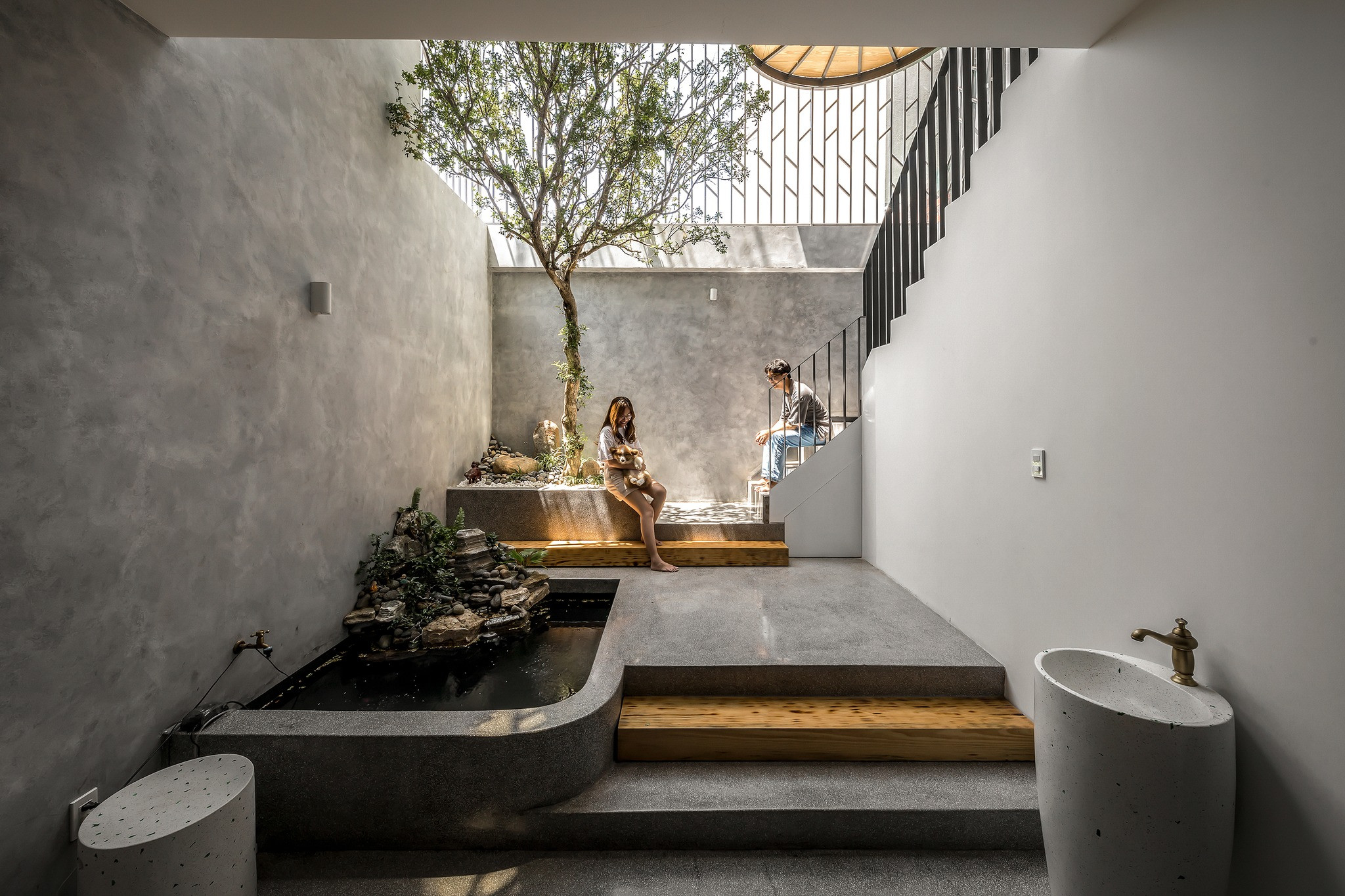 Những sảnh nghỉ, sân vườn mini có hồ cá thư giãn là nơi gia chủ tìm lại sự cân bằng trong cuộc sống bộn bề.