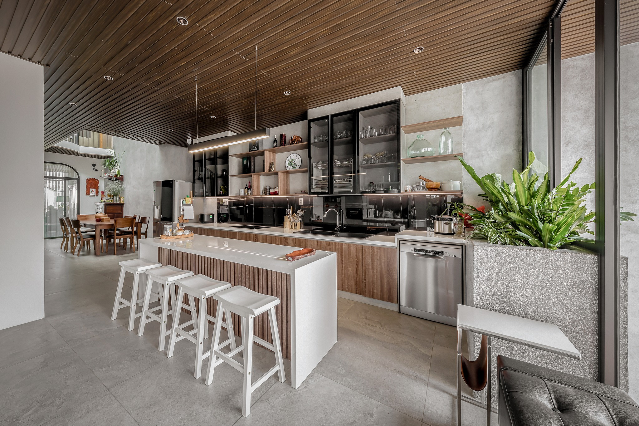 Ngôi nhà mặt phố với các giải pháp với áp lực khói bụi tiếng ồn là sản phẩm do kiến trúc sư Nguyễn Kava cùng cộng sự thực hiện. Công trình có công năng đáp ứng nhu cầu sinh sống của gia đình 3 thế hệ, bao gồm 2 khu bếp ăn riêng biệt, chỗ để 2 chiếc ô tô, một khu làm văn phòng kinh doanh.