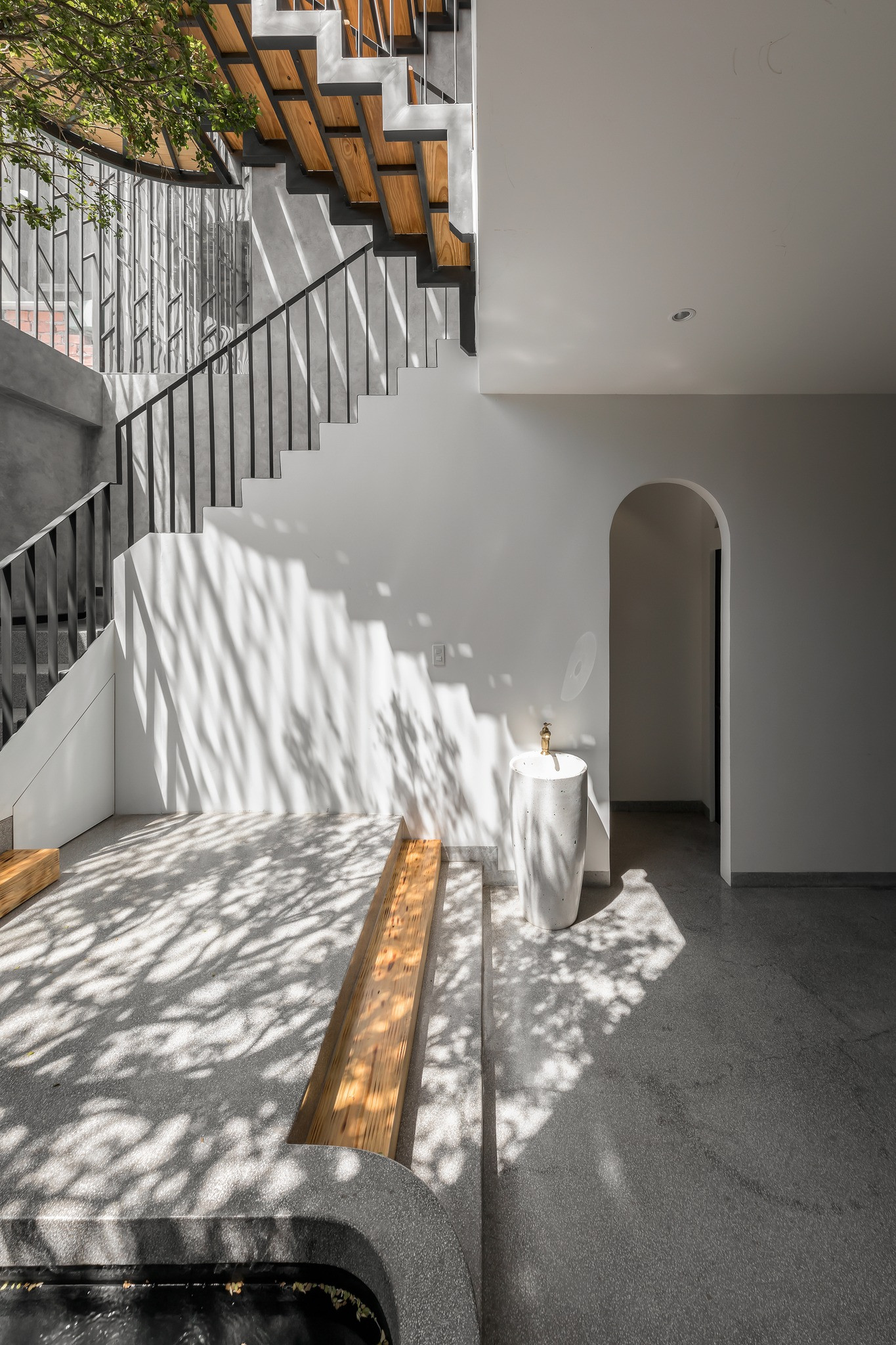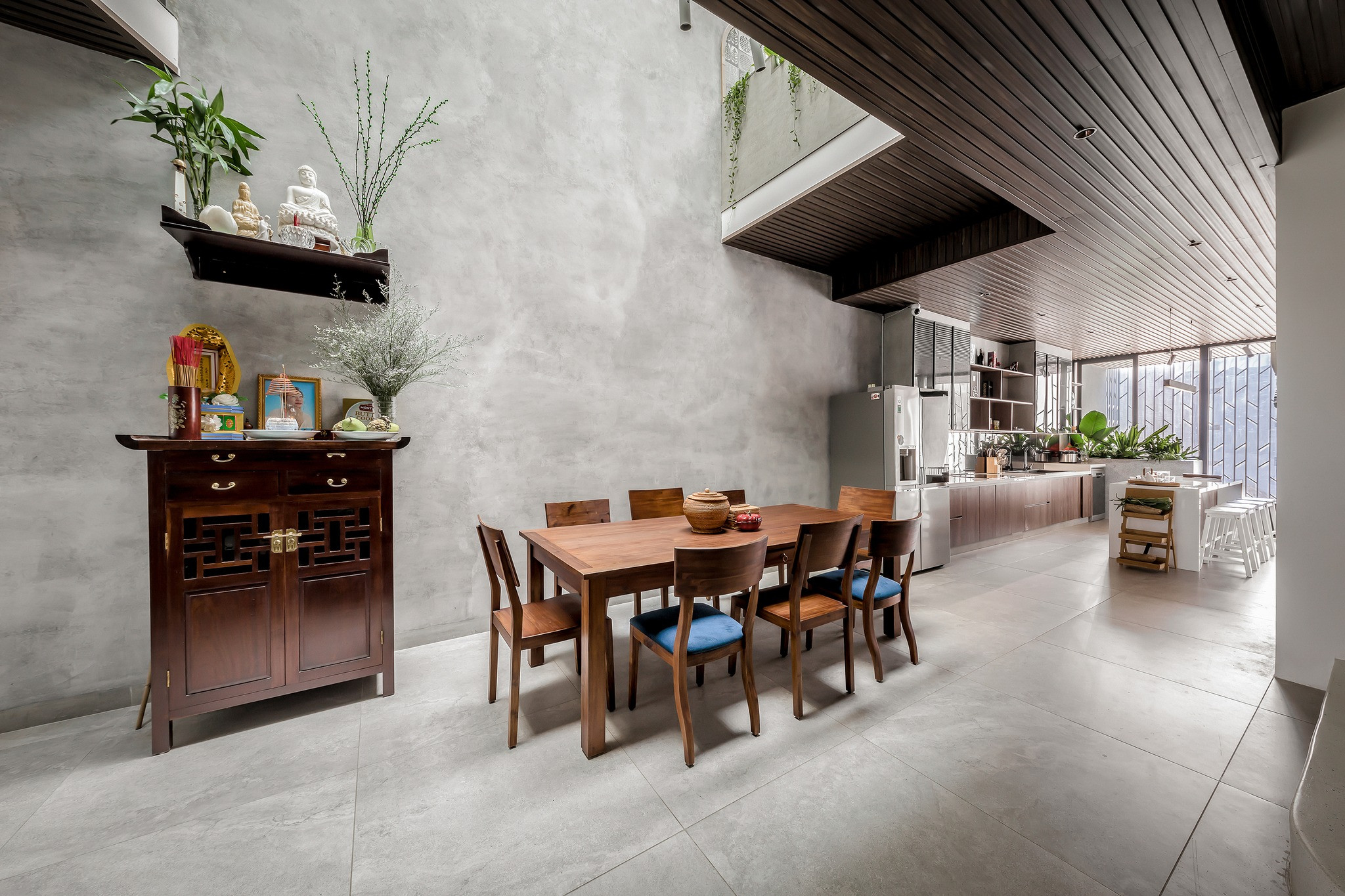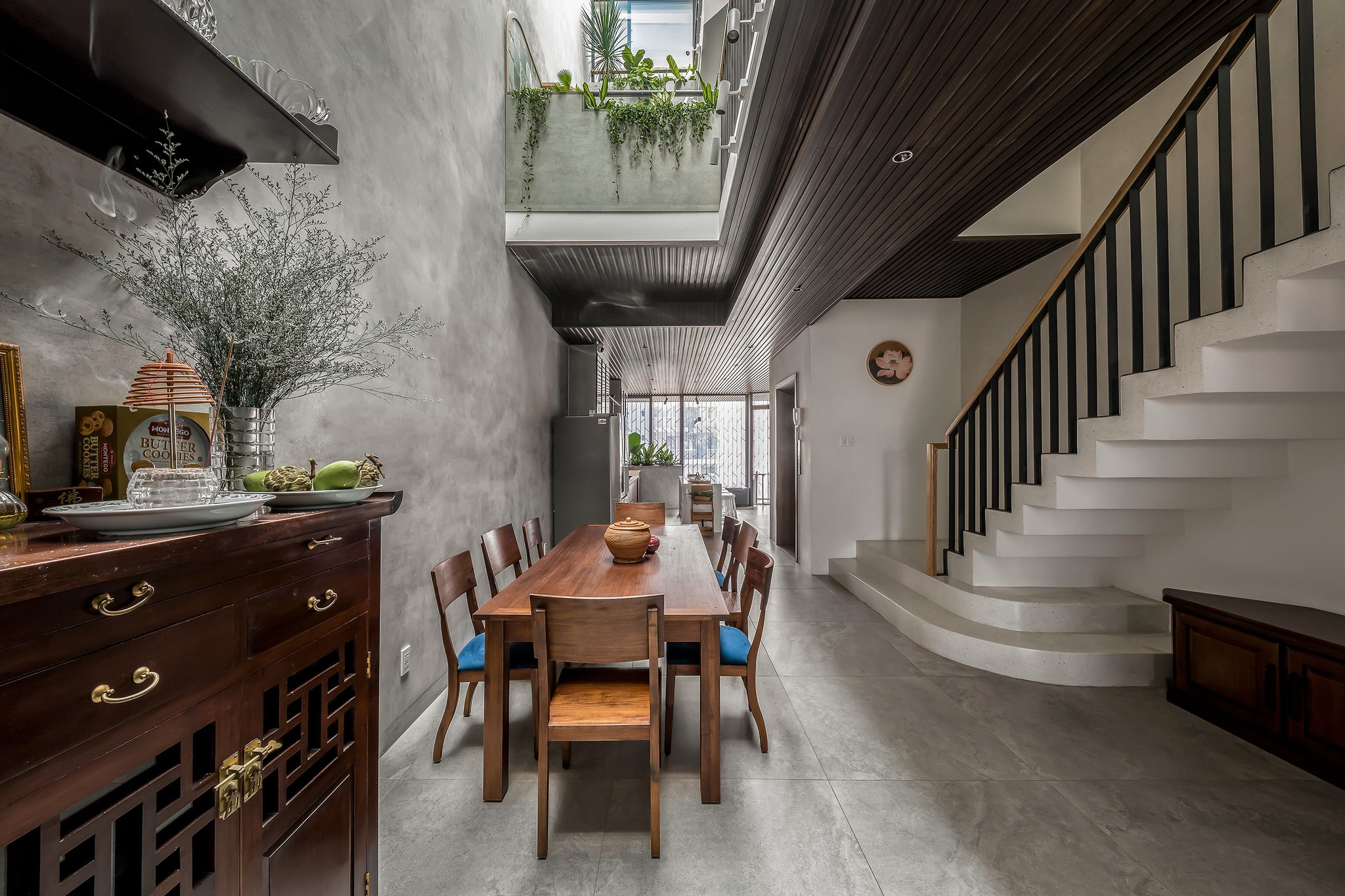 Đây là một ngôi nhà phố tổ hợp nhiều không gian, nội thất bài trí nhẹ nhàng, mộc mạc. Những khoảng không ngập nắng, thoáng mát là ưu điểm lớn nhất của nhà.