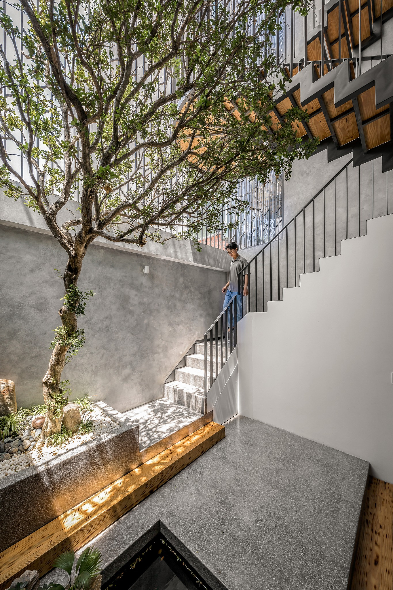 Nhóm KTS rất chú trọng các yếu tố phong thủy về ánh sáng, cây xanh và gió trời. Vì vậy, ngoài công năng tiện nghi, ngôi nhà có những khoảng thở đối lưu gió và lấy sáng từ giếng trời.