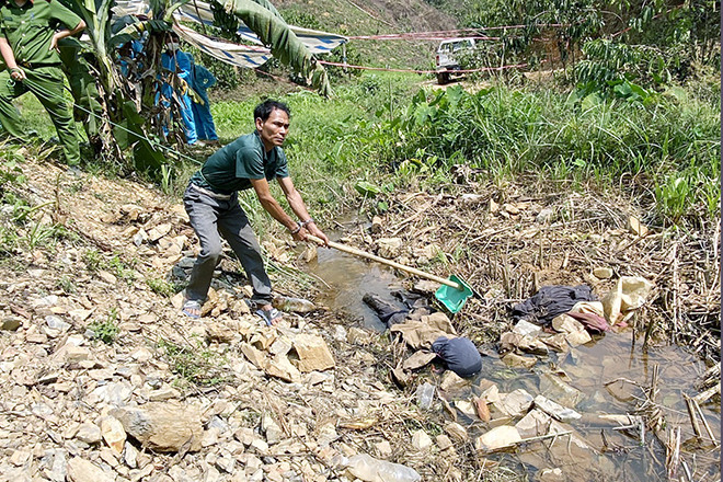 Khi bà Hà đi ăn sáng về không cháu vội cùng những người thân trong gia đình đi tìm, đồng thời trình báo sự việc với Công an xã Châu Phong. Thi thể cháu T. được người thân tìm thấy ngay sau đó.