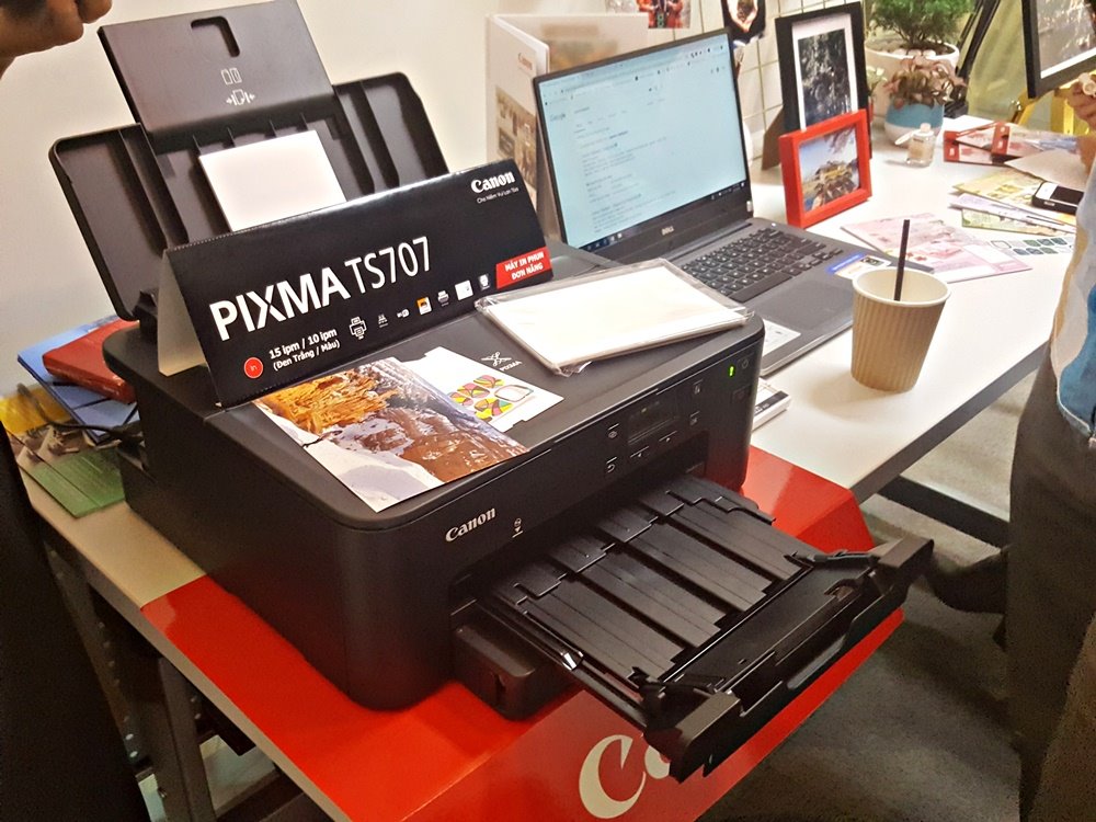 Cũng tại sự kiện, Canon đã cho ta mắt máy in ảnh mới PIXMA TS707 với khả năng in ảnh sắc nét, in văn bản hiệu suất cao, phù hợp với mô hình kinh doanh nhỏ và in ấn tại gia.