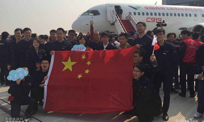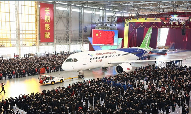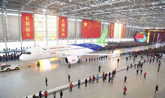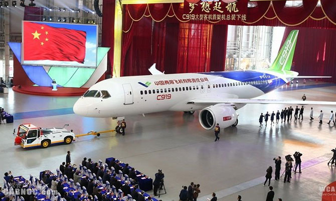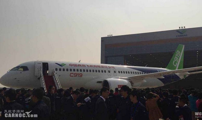 Chiếc máy bay COMAC C919 có thiết kế kết hợp 3 màu sơn trắng, xanh da trời và xanh lá cây. Máy bay vừa được trình diễn trước khoảng 5.000 chính trị gia, tổng giám đốc các hãng hàng không, các nhà cung cấp và các phóng viên. Sự kiện cũng được truyền hình trực tiếp trên mạng lưới truyền hình trung ương của Trung Quốc.