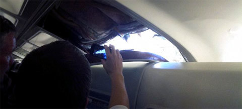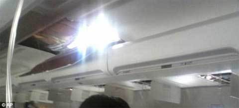 cấp. Có một lỗ thủng ở thân máy bay, dài gần 1m. Bạn có thể thấy vật liệu cách
