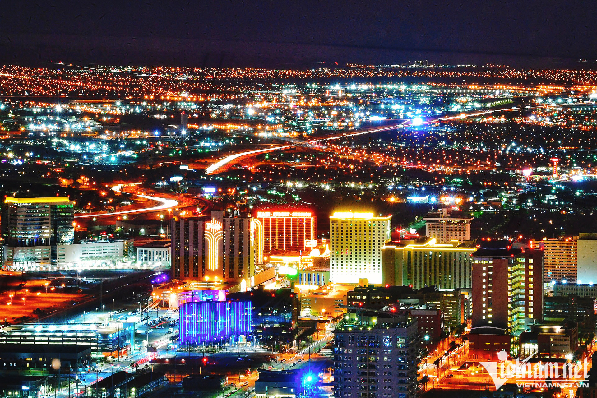 Las Vegas (bang Nevada) rộng lớn, rực sáng khi nhìn từ trên cao. Đi bộ ở phía dưới, sự náo nhiệt, sầm uất đông đúc, rất khác những nơi còn lại của Mỹ. Một tổ hợp khách sạn có tháp skybar dành cho du khách muốn ngắm cảnh toàn thành phố. Giá vé vào cửa để đi thang máy lên cao khoảng 9 USD.Ở ngay tại tầng 1 khách sạn này là một casino rộng hàng nghìn m2 với hàng trăm máy đánh bạc, thu hút khá đông khách, họ thường chơi thâu đêm.Từ lâu, Las Vegas nổi tiếng thế giới với các sòng bạc lớn và sang trọng. Người người luôn tấp nập trên hè phố từ ngày tới đêm. Các khách sạn kiêm casino được xây dựng theo nhiều kiến trúc khác nhau trên thế giới. Liên hợp casino - resort ở đây rộng hàng chục ha, có những công trình, tổ hợp được ví như kỳ quan.Sân bay quốc tế Mc Carran cũng có casino với hàng chục máy bày tại mỗi một phòng chờ.Năm 2005 từng có một người được giải độc đắc tại sân bay này khi giành phần thưởng 3,96 triệu USD. Sau đó, vào tháng 7/2020, một du khách từ California đã mang về nhà 873.000 USD.Tuy nhiên, nhiều người có kinh nghiệm khuyên rằng chỉ nên chơi máy đánh bài ở sân bay khi có nhiều thời gian, ví dụ như máy bay bị trễ chuyến. Ngoài những yếu tố sát giờ khởi hành phải bỏ dở cuộc chơi, khách có thể được thanh toán chậm trong trường hợp giành chiến thắng bởi các thủ tục liên quan đến giấy tờ.
