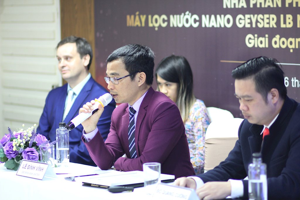 Ông Lê Đình Vĩnh – Giám đốc Cty TNHH thiết bị lọc nước Minh Anh cho biết: “Chúng tôi đã đầu tư nhiều thời gian cho việc nghiên cứu và tìm kiếm các sản phẩm lọc nước phù hợp với nguồn nước Việt Nam và rất ấn tượng về nền tảng và sự phát triển công nghệ của Geyser Liên bang Nga. Minh Anh Water là nhà phân phối duy nhất các sản phẩm máy lọc nước nano Geyser Liên bang Nga nhập khẩu nguyên chiếc từ năm 2014. Các sản phẩm Máy lọc nước Nano Geyser đã được phần lớn người tiêu dùng Việt Nam ưa chuộng bởi đây là sản phẩm không chỉ lọc sạch mà còn giữ lại Canxi, các khoáng chất cần thiết, rất tốt cho sức khỏe. Sau quá trình hợp tác, Minh Anh Water và Geyser LB Nga đã trở thành đối tác uy tín của nhau và hiện nay, chúng tôi rất vinh dự trở thành đơn vị độc quyền nhập khẩu và phân phối sản phẩm này tại Việt Nam cũng như toàn Đông Dương”.