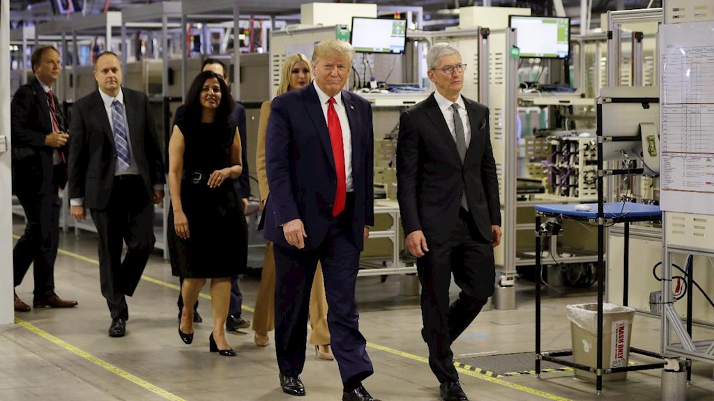 Tổng thống Donald Trump thăm nhà máy sản xuất Mac Pro cùng CEO Tim Cook. Ảnh: Internet |