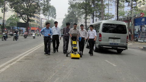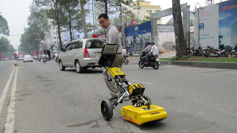Ngày 13/1, Sở GTVT TP.HCM tiếp tục đưa máy radar xuyên đất (Ground Penetrating Radar - GPR) vào hành trình dò tìm “hố tử thần” ở các tuyến đường trong TP.