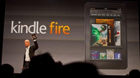 Xuất hiện trên sân khấu trong sự chờ đợi nín thở của tất cả quan khách, Giám đốc điều hành Jeff Bezos của Amazon đã chính thức công bố Kindle Fire, mẫu máy tính bảng được kỳ vọng sẽ trở thành đối thủ đích thực đầu tiên của iPad. Với màn hình 7-inch, Fire có kích cỡ chỉ nhỏ bằng một nửa so với iPad. Thiết kế và ngoại hình của nó có nhiều điểm tương đồng với tablet Nook Color của Barnes & Nobles, ngoại trừ việc Nook Color là một dòng sách điện tử "lấn sân" còn Amazon đã xác định ngay từ đầu rằng Fire sẽ trở thành một nền tảng của game, phim, nhạc số và các ứng dụng di động.