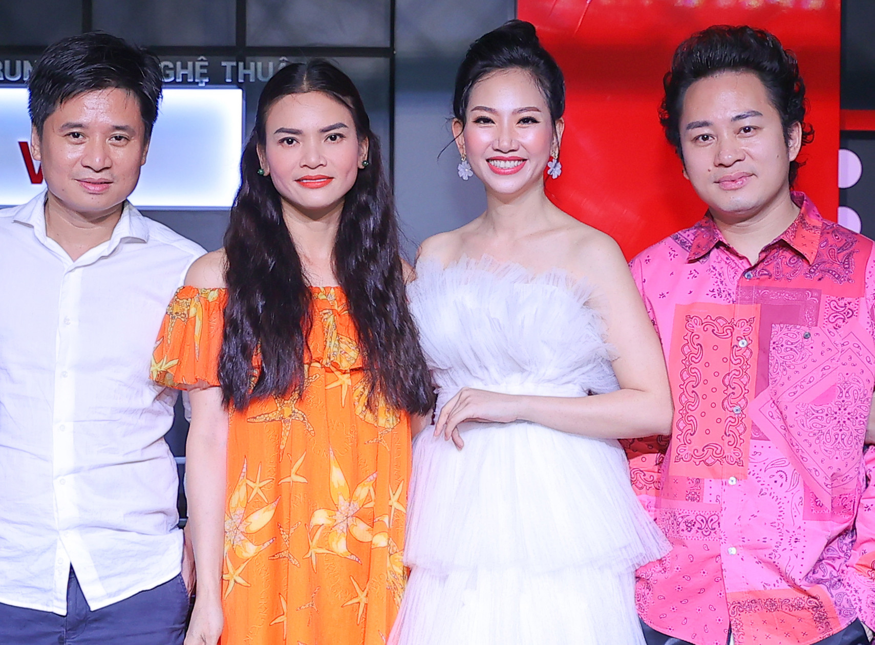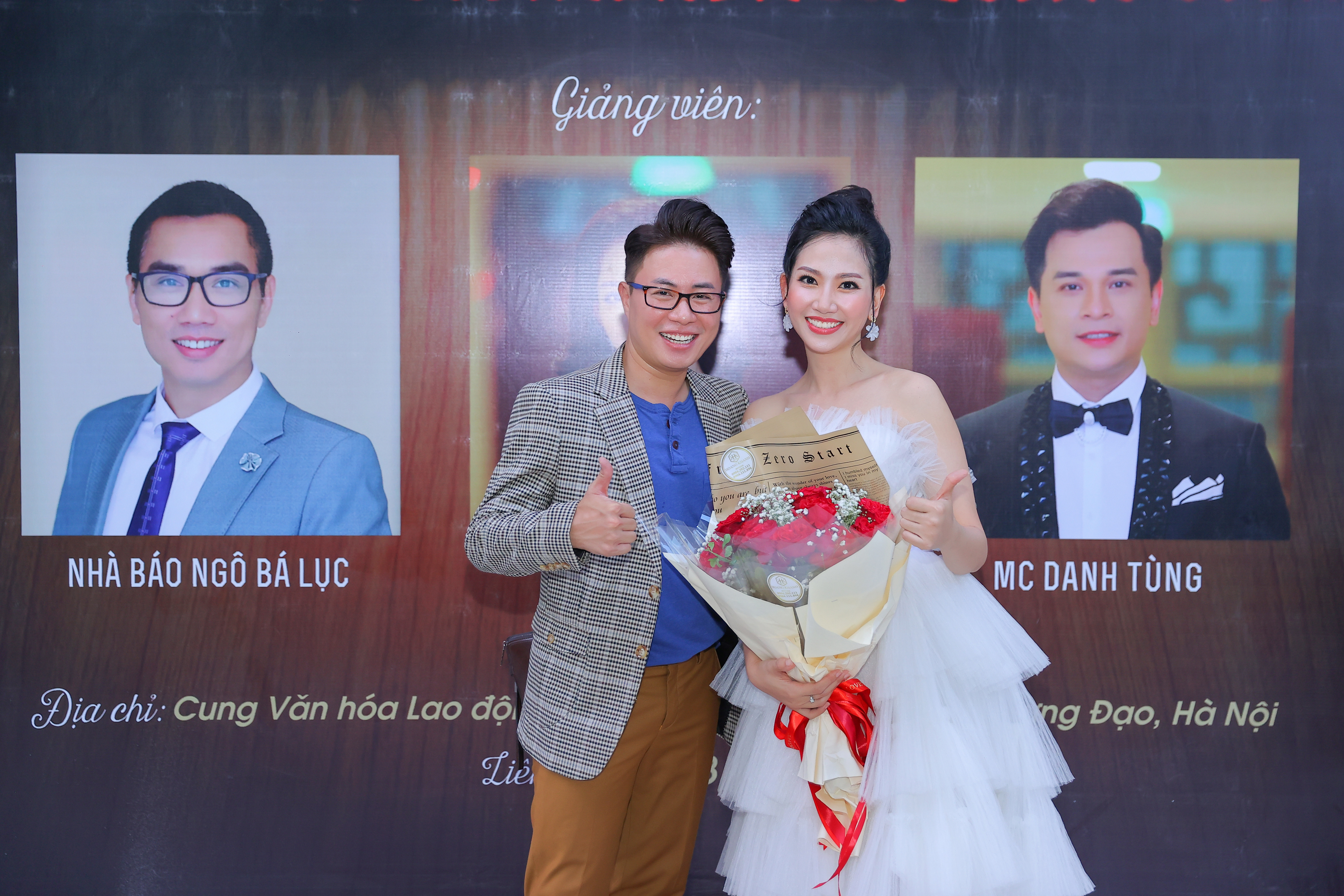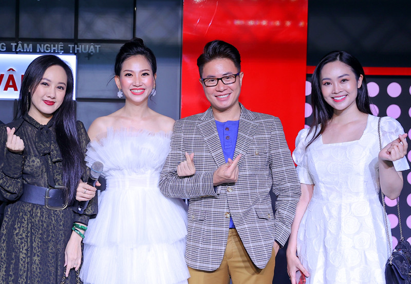 MC Hoài Anh, Mỹ Lan, Lê Anh, Thùy Linh của VTV đến chúc mừng MC Mỹ Vân ra mắt trung tâm đào tạo MC tối 17/6.