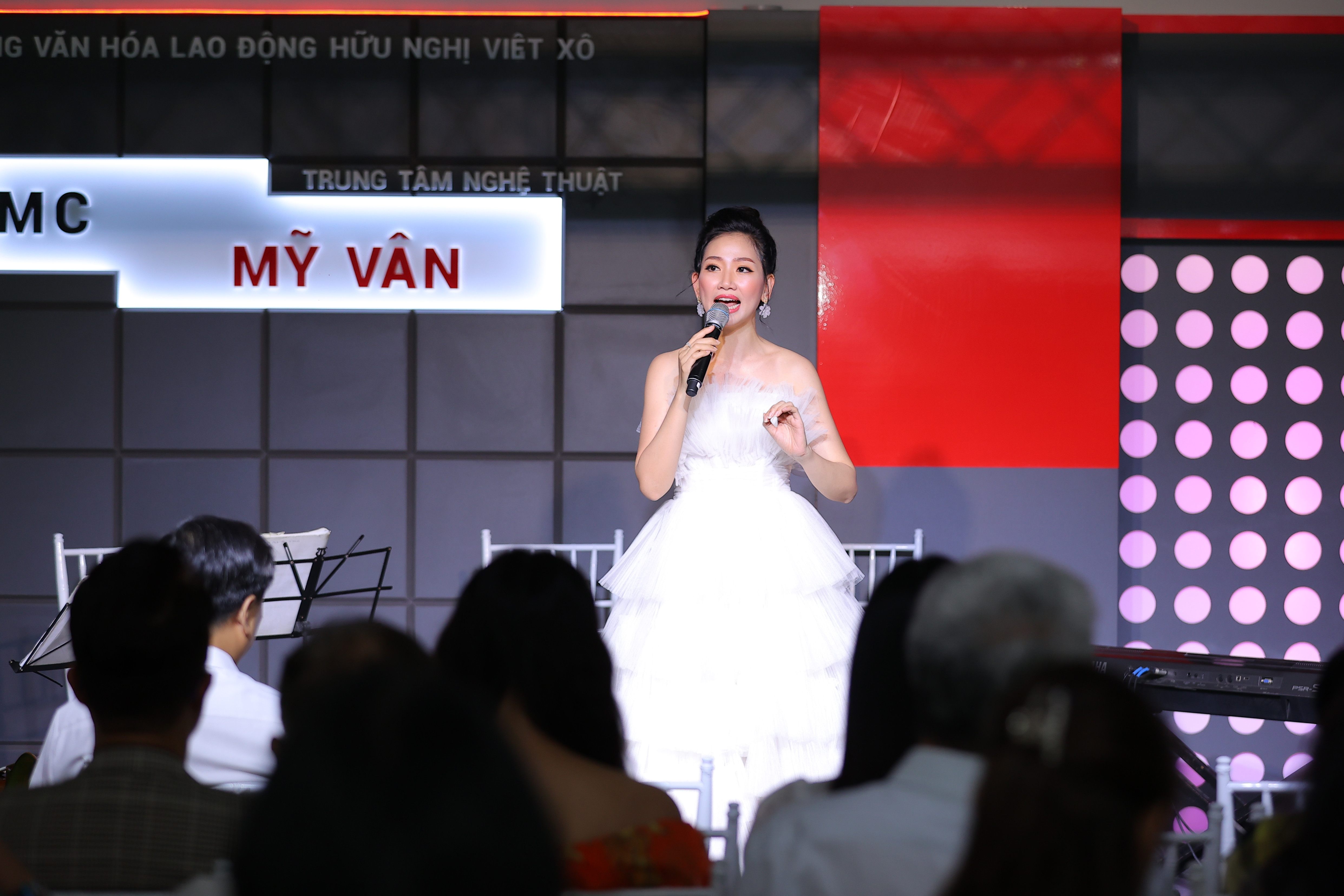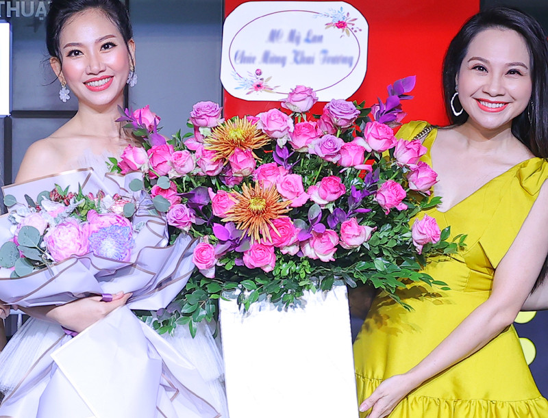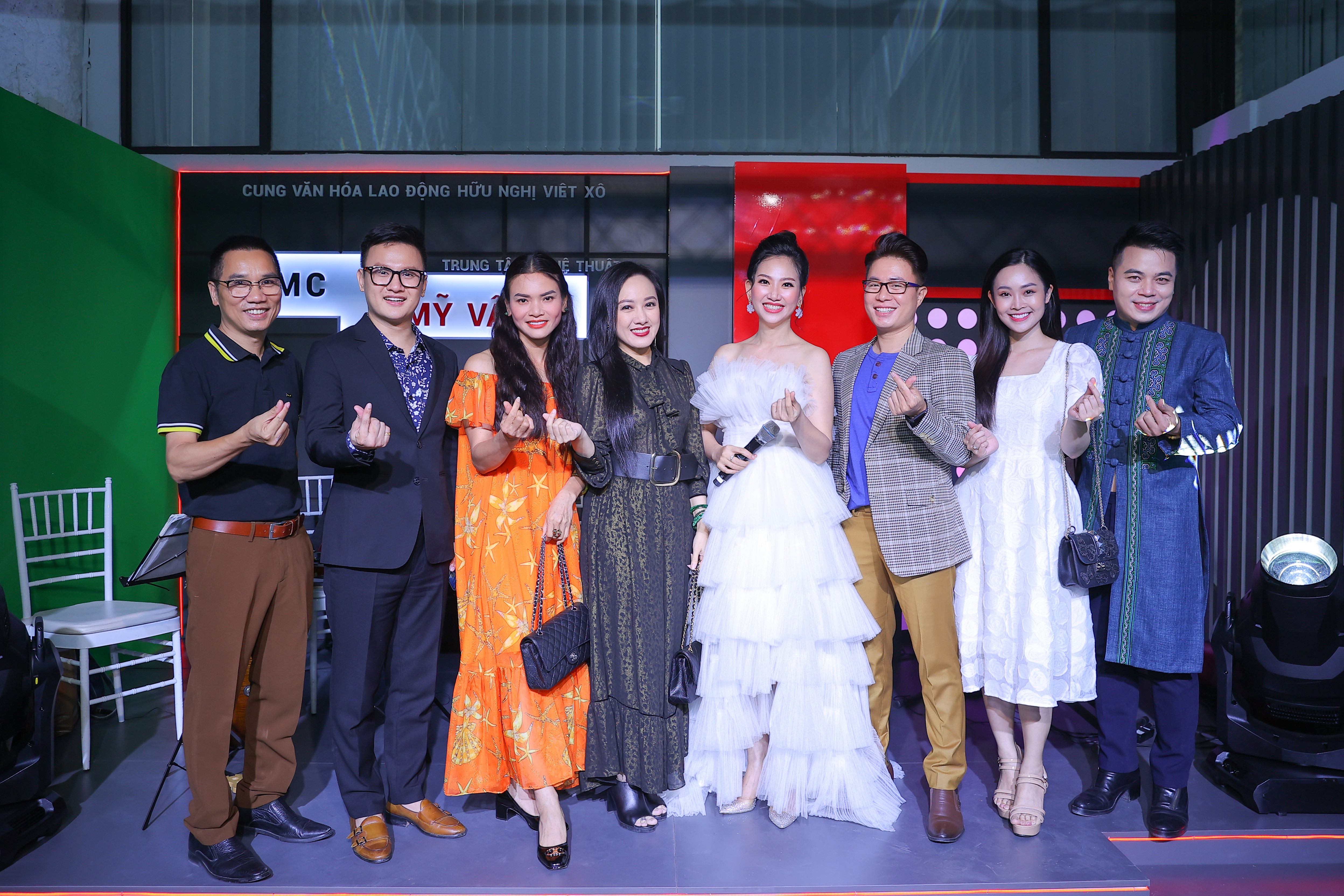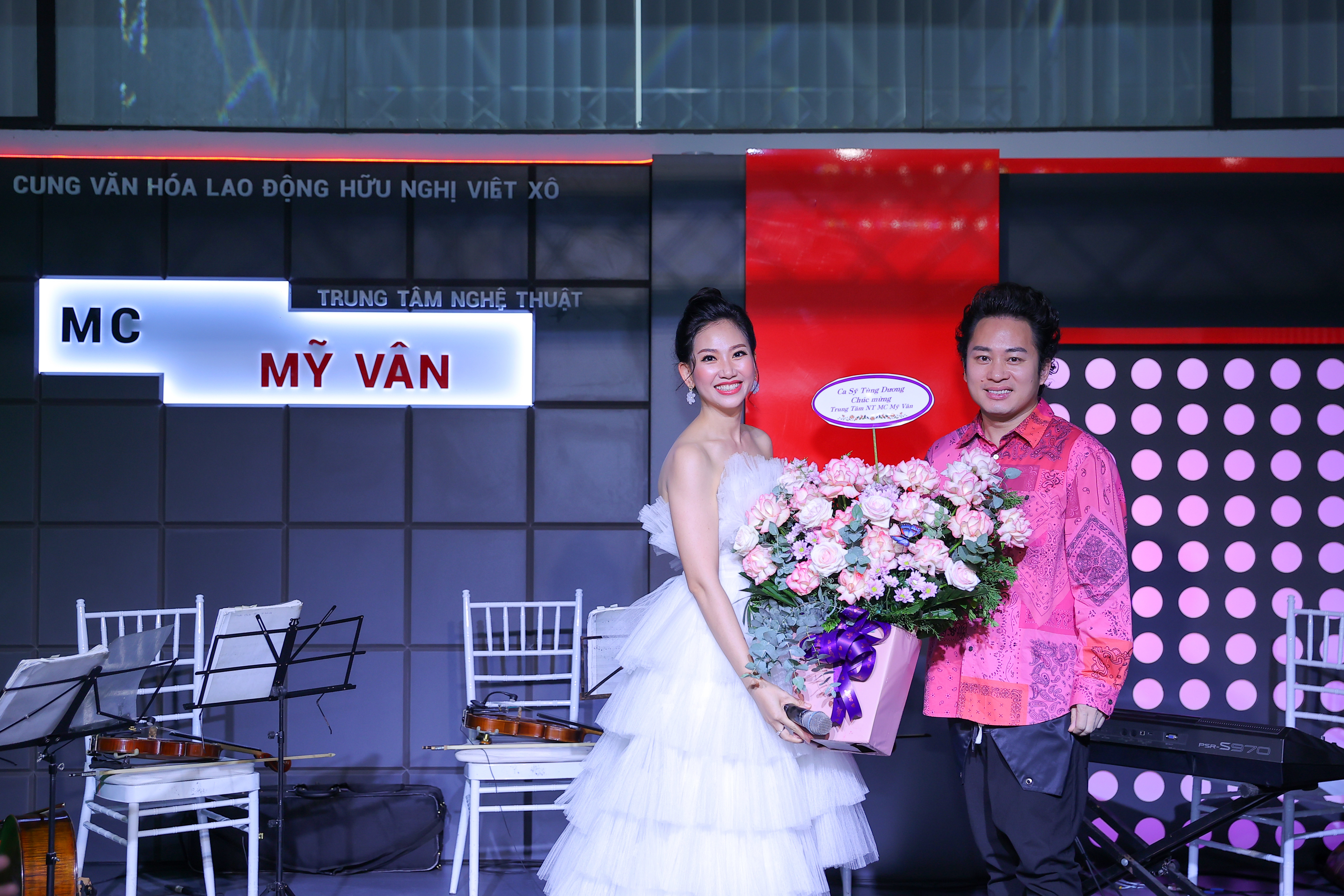 MC Hoài Anh, Lê Anh, Thùy Linh đến chúc mừng MC Mỹ Vân.MC Mỹ Lan tặng hoa chúc mừng người chị, người đồng nghiệp thân thiết. Mỹ Vân là MC quen thuộc của Đài truyền hình Việt Nam trong nhiều năm qua. Cô từng dẫn các cuộc thi như Sao Mai, Sao Mai điểm hẹn, các talkshow trên VTV và nhiều sự kiện khác. MC Mỹ Vân cùng MC Danh Tùng và nhà báo Ngô Bá Lục vừa phối hợp với Cung văn hóa Hữu nghị Việt Xô mở Trung tâm đào tạo MC cho các bạn yêu thích nghề dẫn chương trình. Các ca sĩ Phạm Phương Thảo, Tùng Dương, Tấn Minh... cũng tới chúc mừng MC Mỹ Vân. MC Thảo Vân, BTV Hoài Anh, Lê Anh, Thùy Linh,… sẽ tham gia giảng dạy ở trung tâm của Mỹ Vân.Tùng Dương chúc mừng MC Mỹ Vân.