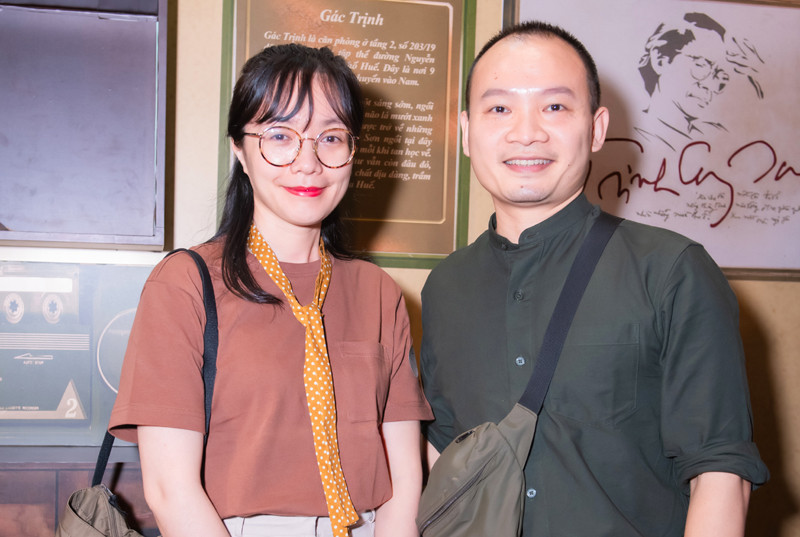 Sự kiện công chiếu hai bộ phim 'Trịnh Công Sơn' (95 phút) và 'Em và Trịnh' (136 phút) diễn ra tại Hà Nội tối 9/6 thu hút đông đảo người nổi tiếng, trong đó có MC Lại Bắc Hải Đăng. Đây là lần hiếm hoi anh cùng bà xã lộ diện tại một buổi ra mắt phim. MC Lại Bắc Hải Đăng chia sẻ sau buổi xem phim Trịnh Công Sơn trên trang cá nhân: "Ấn tượng em Bùi Lan Hương nhập vai như 1 diễn viên thực thụ. Và phải thừa nhận đoàn phim đã cast được một Dao Ánh rạng rỡ. Cảnh phim, mầu phim, trang phục, nhạc phim đều xứng đáng ra rạp ngồi thưởng thức. Điểm duy nhất chưa ưng phim này là cách dùng hình tư liệu". MC Đức Bảo chụp hình trong không gian đầy màu hoài niệm. MC Phí Linh MC Anh Tuấn và Diễm Quỳnh cũng tới buổi công chiếu. MC Huyền Trang 'Mù Tạt'. MC, diễn viên Thái Dũng diện trang phục đậm chất hoài cổ. Trong buổi họp báo tại Hà Nội, bà Trịnh Vĩnh Trinh - em gái nhạc sĩ Trịnh Công Sơn chia sẻ: "Anh Sơn của tôi là một người rất may mắn, anh đã được Hà Nội yêu thương và đón nhận khi anh còn sống. Vậy nên tôi cũng rất mong phim Em và Trịnh cũng sẽ được khán giả Hà Nội yêu mến như đã từng yêu mến anh Sơn".Đạo diễn Phan Gia Nhật Linh. NSƯT Trần Lực - vai Trịnh Công Sơn khẳng định thế hệ của anh, của tiền bối hay thế hệ trẻ Hà Nội bây giờ đều yêu mến Trịnh Công Sơn, mà cung đường lãng mạn mang tên Phố đi bộ Trịnh Công Sơn là một ví dụ cho tình cảm ấy của người Hà Nội dành cho ông. Vì vậy ê-kíp sản xuất đều kỳ vọng cả hai bản phim sẽ được khán giả Hà Nội ủng hộ. E kíp đoàn phim tại buổi công chiếu ở Hà Nội. Ca sĩ Bùi Lan Hương đảm nhiệm vai ca sĩ Khánh Ly trong phim. Đáp lại lời đề nghị của diễn viên Avin Lu - người đảm nhận vai Trịnh Công Sơn thời trẻ, Bùi Lan Hương đã ngay lập tức hát chay ca khúc 'Nhìn những mùa thu đi' bài hát đầu tiên anh Sơn dạy Mai hát những ngày đầu gặp gỡ.