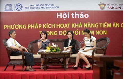 Hội thảo cũng đã đề cập việc ứng dụng Phương án 0 tuổi tại hệ thống Trường Mầm Non Saigon Academy, chia sẻ kinh nghiệm, kết quả, những khó khăn của các bậc phụ huynh trong quá trình áp dụng các phương pháp giáo dục sớm tại nhà.