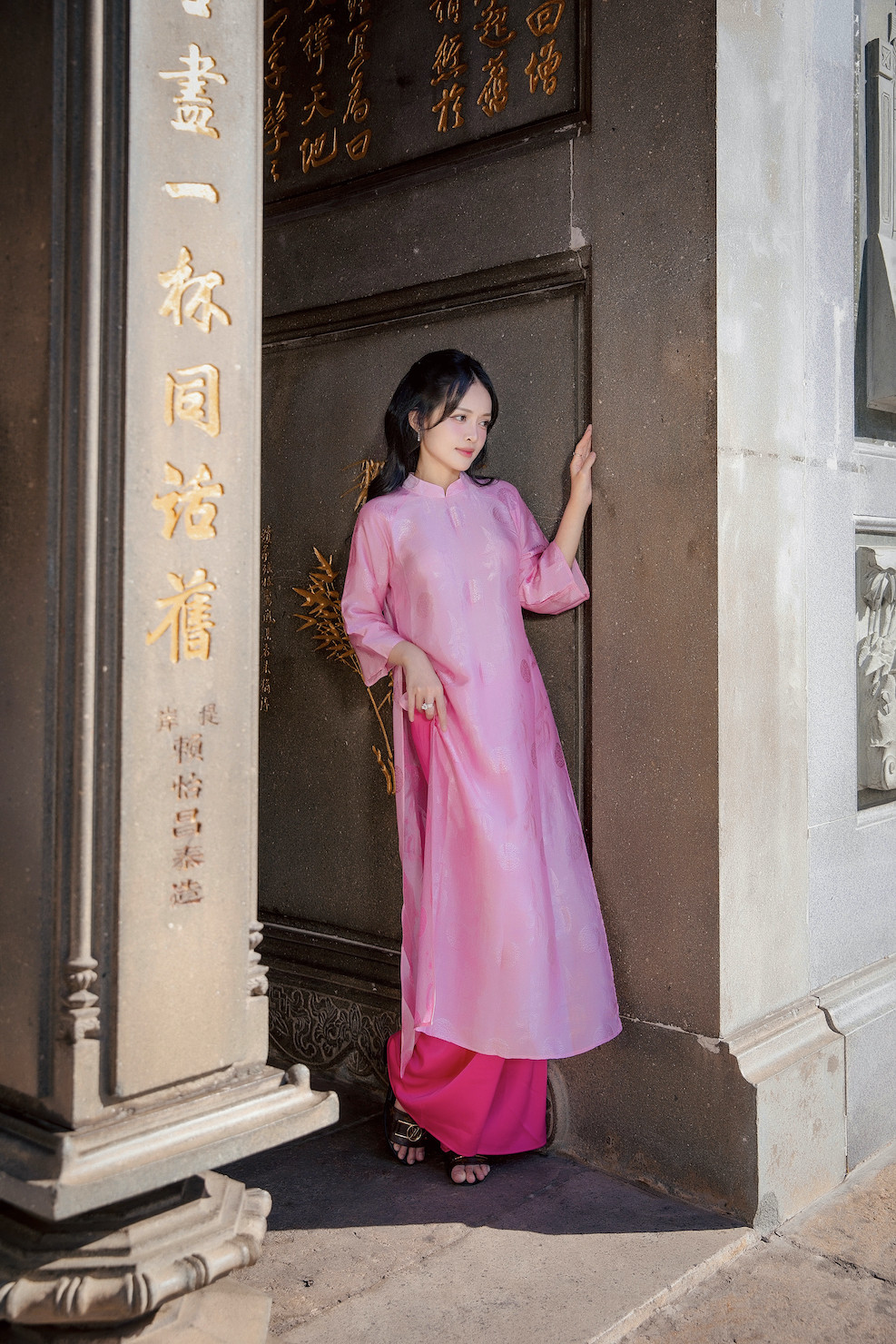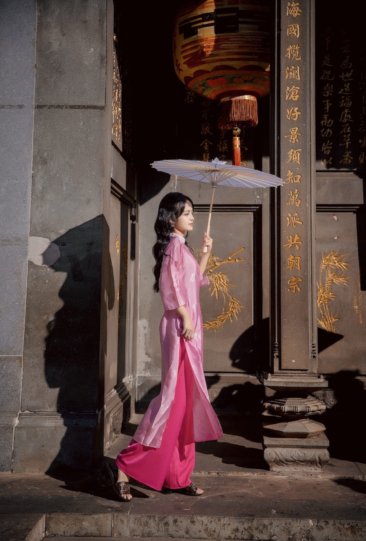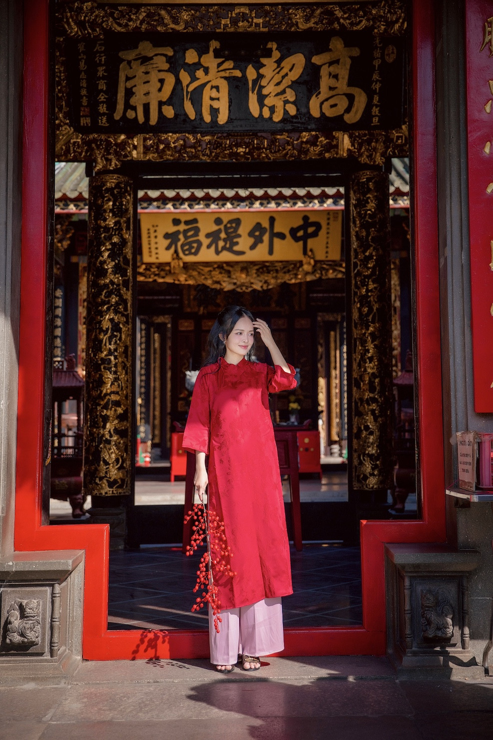 MC Thanh Trúc vừa thực hiện bộ ảnh mới trước thềm năm mới Ấn Tỵ tại Hội Quán Nghĩa An và Chùa Bà Thiên Hậu vào buổi trưa nắng của những ngày cận Tết.