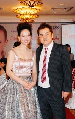 | MC Thủy Hương và chuyên gia trang điểm hàng đầu Nhật Bản trong buổi ra mắt Granmula |