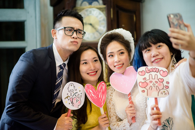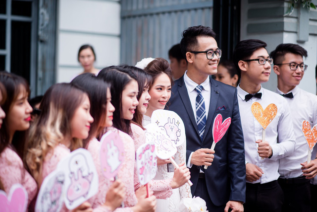 Nhiều bạn bè chúc phúc cho cặp trai xinh - gái đẹp.