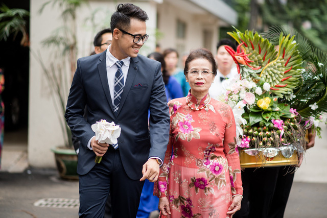 Nam MC Đức Bảo cùng mẹ trong lễ ăn hỏi.