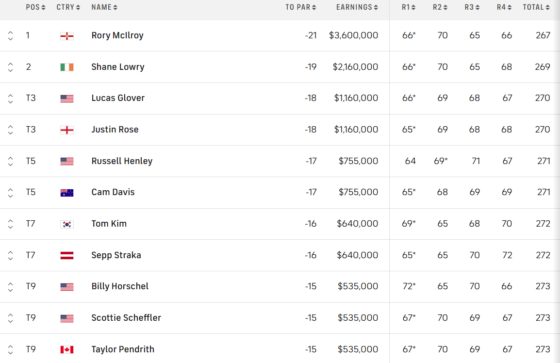 Kết quả này giúp McIlroy giành chiến thắng 2 gậy trước người bạn Shane Lowry, qua đó nâng cao danh hiệu PGA Tour đầu tiên sau gần một năm.