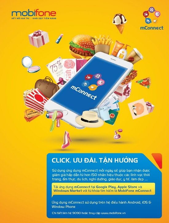 Nhằm mang tới cho khách hàng cơ hội tận hưởng các ưu đãi hấp dẫn từ các đối tác liên kết của mình, nhà mạng MobiFone đã phát triển ứng dụng mConnect cung cấp các voucher điện tử giảm giá các dịch vụ tiêu dùng cho thuê bao MobiFone.