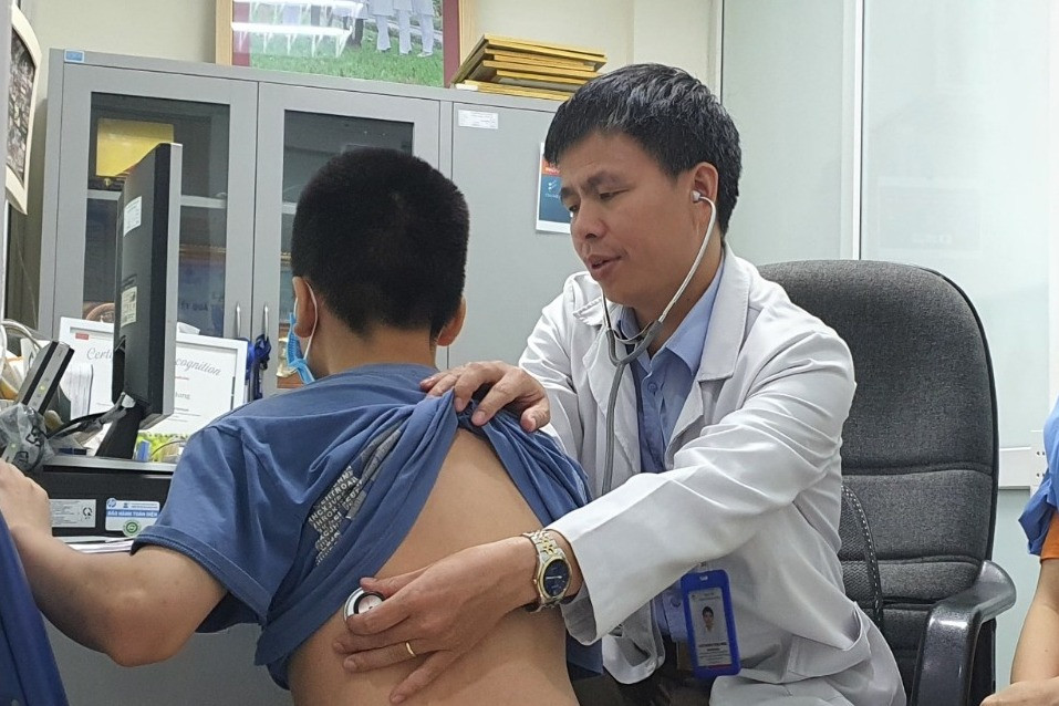 Bác sĩ Viện Dinh dưỡng Quốc gia khám cho trẻ. Ảnh: Võ Thu