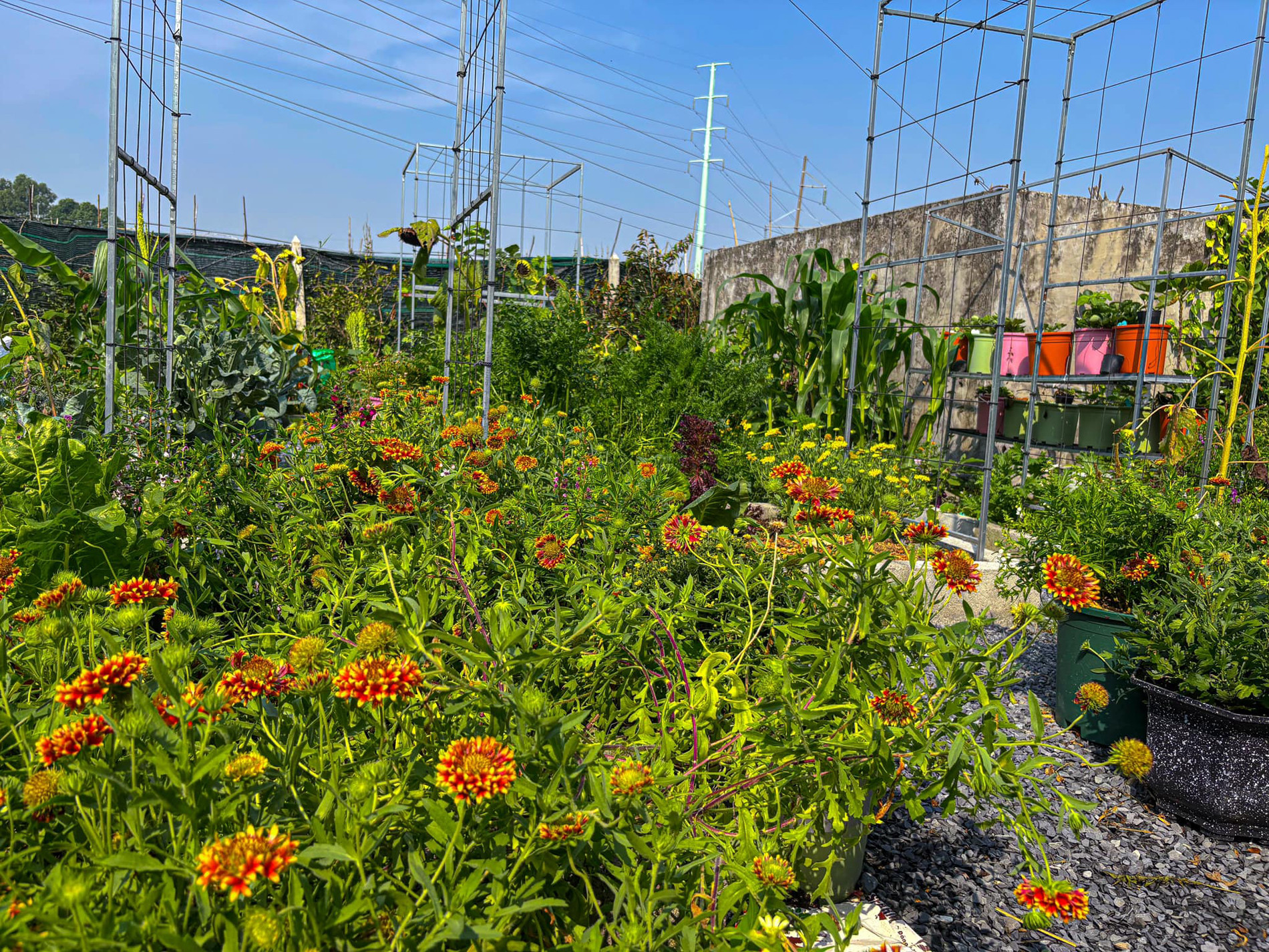 Chị Hân trồng nhiều loài hoa và cây gia vị để thu hút thiên địch như nhện bắt mồi, bọ rùa, bọ ngựa, ong…, từ đó ngăn ngừa côn trùng gây hại.
