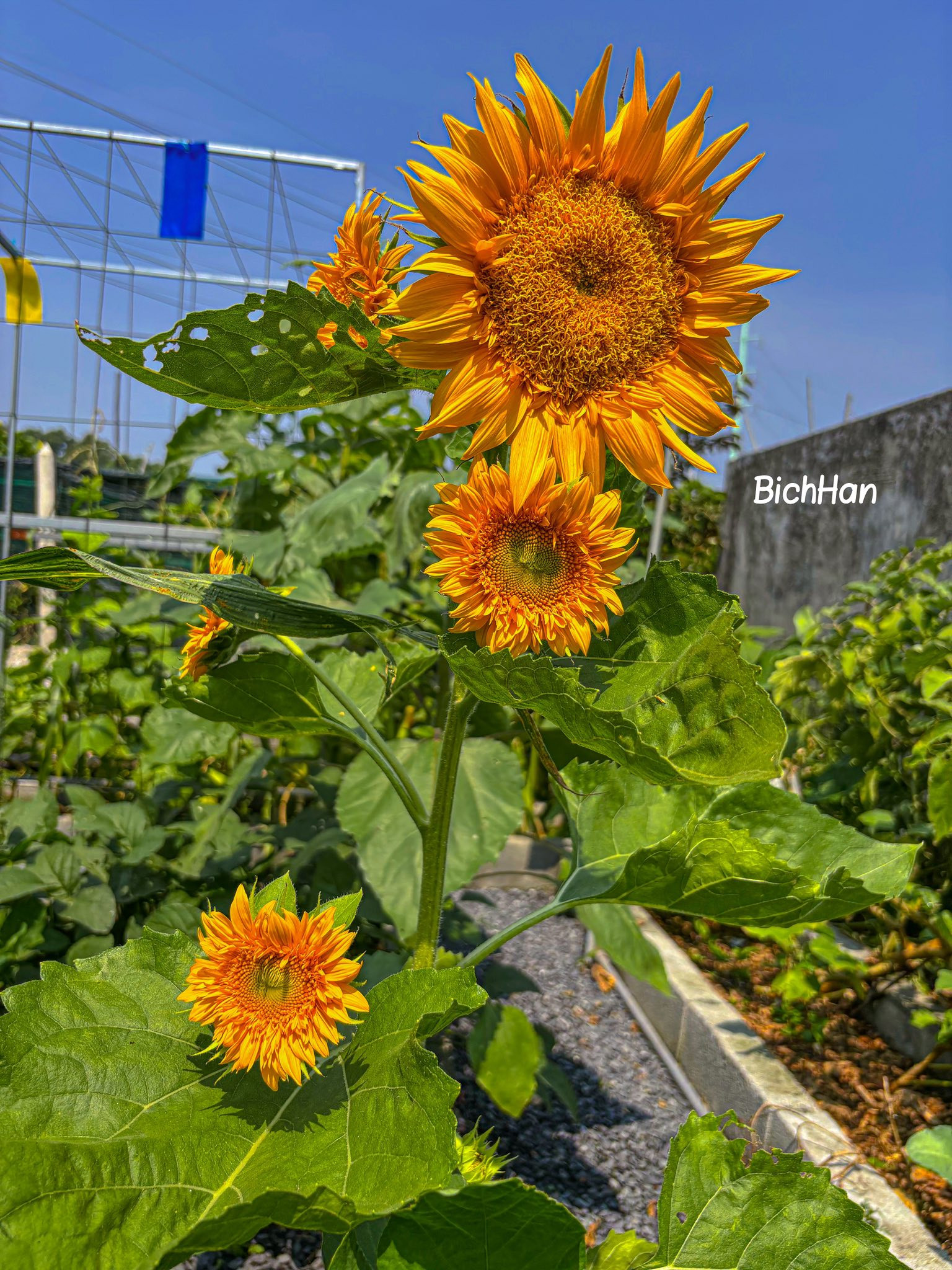 Hoa hướng dương thường được ghép chung với ngô, cà tím, đậu, bầu... để thu hút côn trùng thụ phấn và nhện nhảy. Các loại cúc Zinnia, Cosmos, Xuxi sẽ trồng quanh vườn..., vừa đẹp vừa thu hút các loại côn trùng có lợi.
