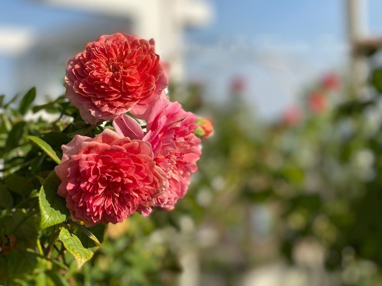 Bên cạnh đó, vườn hoa hồng còn khoe sắc rực rỡ bởi các giống màu cam như masora, la chance, corail gelee, amandine chanel,... hay hồng đỏ gồm kate, red intuition, traditional home anniversary 2004, red apple, monica bellucci,...