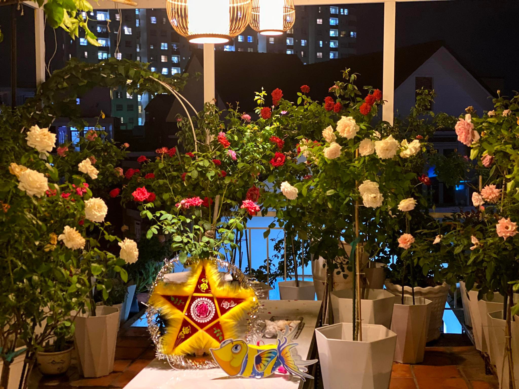 Không gian 'du lịch tại gia' tràn ngập hoa hồng trên sân thượng