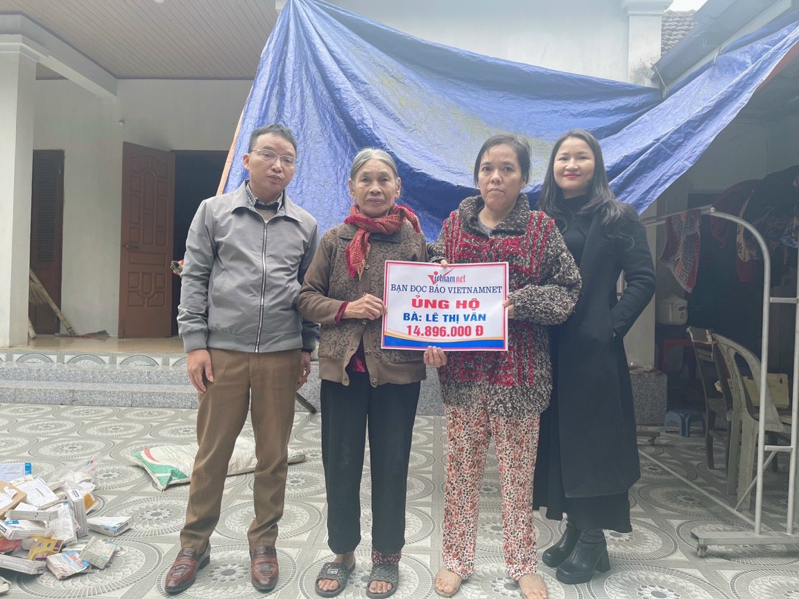 PV Báo VietNamNet vừa trao số tiền gần 15 triệu đồng tới bà Lê Thị Vân (83 tuổi, thôn Phú Quý, xã Bùi La Nhân, huyện Đức Thọ, tỉnh Hà Tĩnh), mẹ của chị Lê Thị Xuân (45 tuổi) mắc bệnh rối loạn tâm thần.