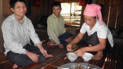 Qua những đoạn đường ngoằn nghèo của huyện Đà Bắc, tỉnh Hòa Bình chúng tôi hỏi đường đến nhà ông Lường Văn Săng ở xóm Than, xã Tân Pheo. Trước khi chỉ đường những người dân vô tư ấy cũng “cố ý” khuyến mại thêm thông tin về hoàn cảnh đặc biệt gia đình ấy: Cảnh nhà ấy khổ lắm! Có mấy đứa con đều không biết nói, không biết đi, chỉ nằm và ăn. Không hiểu tật bệnh gì, nên trông rất sợ?!