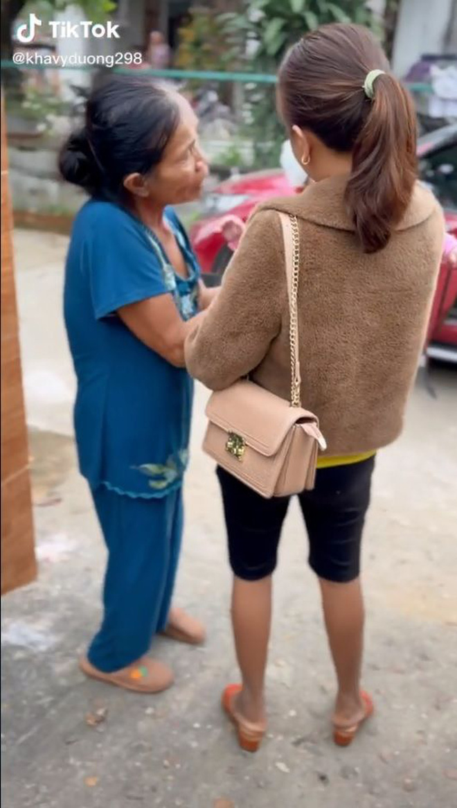 Nhưng trái ngược với sự lưu luyến không rời của người mẹ, cô gái chỉ cười khúc khích, an ủi bà: "Tụi con về nghen, không có khóc. Trời ơi, đi vô đi, mẹ đi vô tụi con mới về được".
