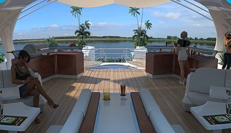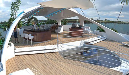 Trên tàu có thể chứa 12 người cùng thủy thủ, với diện tích sinh hoạt lên tới 1000m2.