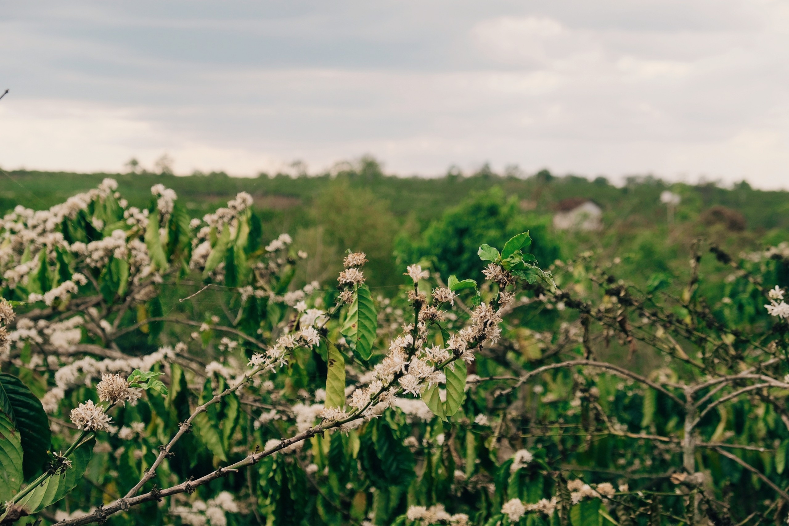 Theo người dân địa phương, mùa hoa cà phê ở Tây Nguyên kéo dài độ 2 tháng. Tùy thổ nhưỡng, lượng nước, thời tiết từng vùng mà hoa sẽ nở rộ từ cuối tháng 2 đến hết tháng 4 dương lịch hàng năm, chia thành nhiều đợt (Ảnh: Thanh Dat Phan).Trong đó, tháng 3 được xem là khoảng thời gian hoa nở đẹp nhất. Mỗi đợt, hoa nở từ 7 - 10 ngày, tập trung chủ yếu ở những khu vực như Pleiku, Buôn Ma Thuột, Đắk Lắk,... (Ảnh: Ngô Trọng Hiếu).Thời điểm hoa cà phê nở, tiết trời ở Tây Nguyên vẫn còn chớm xuân, se lạnh, thu hút ong rừng tới hút mật, chan hòa với sắc xanh khắp nơi, tạo khung cảnh đẹp như tranh (Ảnh: Thiện Trần Minh).Nhìn từ xa, hoa cà phê trông giống như những bông tuyết trắng trĩu nặng trên cành, nổi bật giữa sắc xanh của lá. Hoa cà phê nhỏ nhưng mọc thành chùm, kết thành bông, nở trải dọc cành. Cánh hoa mỏng, nở tròn xoe, nổi bật với nhị trắng đan xen (Ảnh: Nguyễn Đức).