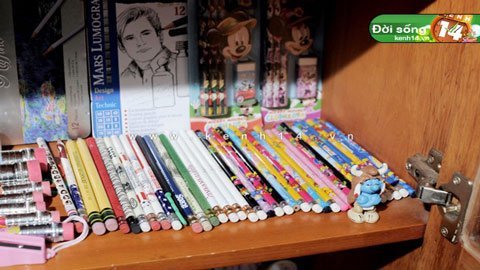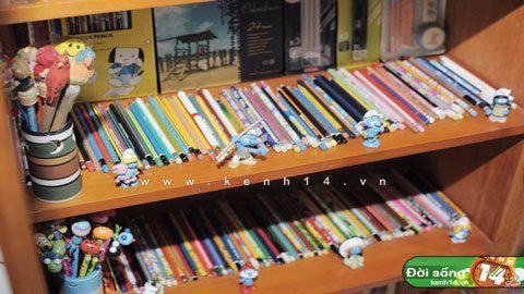 | Chị Trang có cả một chiếc tủ để bày bút chì đấy nhé! |