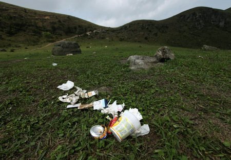 Rác cũng bắt đầu theo chân du khách lên Đồng Cao.
