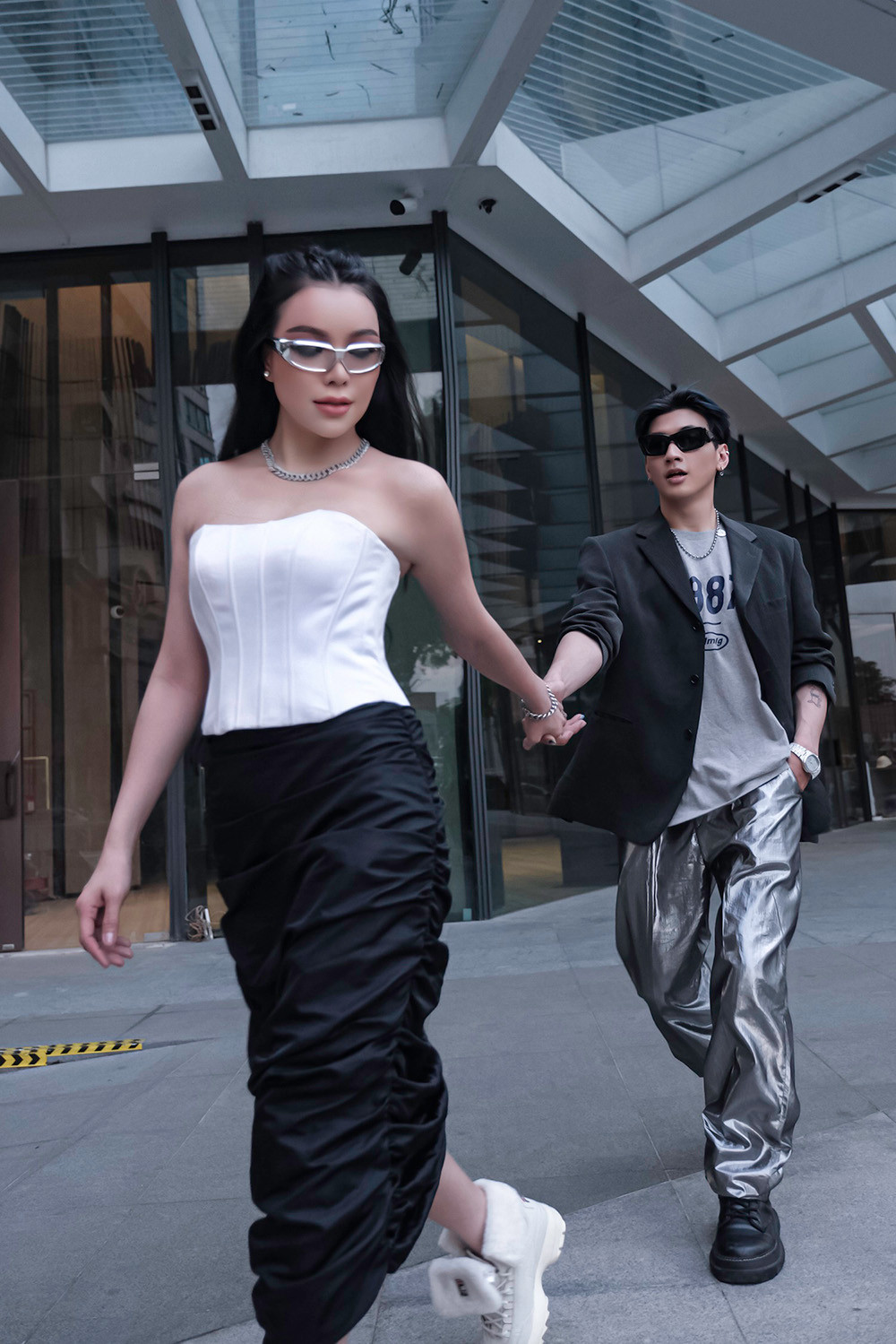 Trà Ngọc Hằng diện trang phục đơn giản mang phong cách năng động. Cô thể hiện khả năng làm stylist khi tự phối đồ, kết hợp phụ kiện ở bộ ảnh mới.Diện áo thun tay dài kết hợp váy caro đen trắng và giày bốt đen cổ cao, Trà Ngọc Hằng tình tứ bên mẫu nam Hy Junmin.Ở trang phục có phần đơn giản, cô khéo léo dùng khăn rằn tạo điểm nhấn, phối cùng váy ngắn khỏe khoắn.Trà Ngọc Hằng tiếp tục ‘lăng xê’ mốt trùm khăn rằn lên đầu tạo sự phá cách, diện cùng trang phục màu vàng tươi và chân váy xếp ly.Người mẫu gốc Cà Mau gợi ý cách phối đồ tôn dáng với áo thun tay dài hồng cánh sen, váy ngắn đi kèm vớ dài để ‘ăn gian chiều cao’ và khoe đôi chân. Ở trang phục phù hợp cho các bữa tiệc, Trà Ngọc Hằng ngẫu hứng phối vòng tay và vòng cổ với váy đen cùng áo cúp ngực, tạo sự trẻ trung nhưng vẫn cá tính.Về công việc hiện tại, Trà Ngọc Hằng cho biết đang tập trung kinh doanh thời trang lẫn hoạt động nghệ thuật. Nữ người mẫu sinh năm 1990 cho rằng thời trang như hơi thở nên thường xuyên cập nhật xu hướng, học hỏi, thử sức trong lĩnh vực này.Cô thường xuyên tập yoga cùng con, nhằm rèn luyện sức khỏe, hoàn thiện vóc dáng. Trà Ngọc Hằng được biết đến là Hoa khôi Đất Mũi, Top 10 Siêu mẫu Việt Nam 2010, Á hậu 1 Hoa hậu Quốc tế người Việt năm 2011.