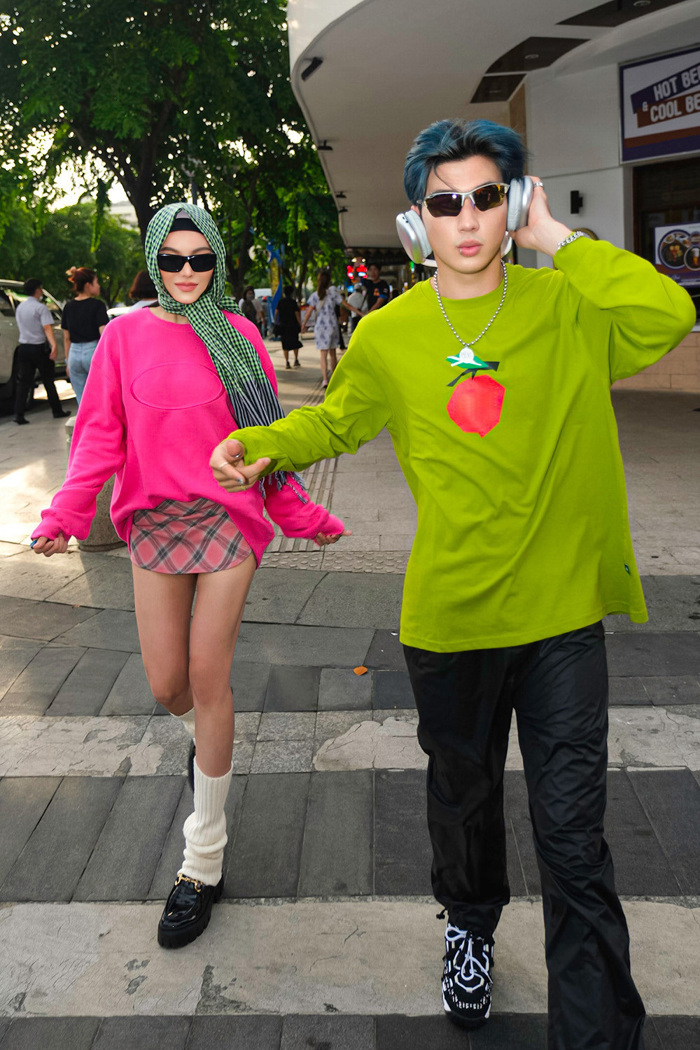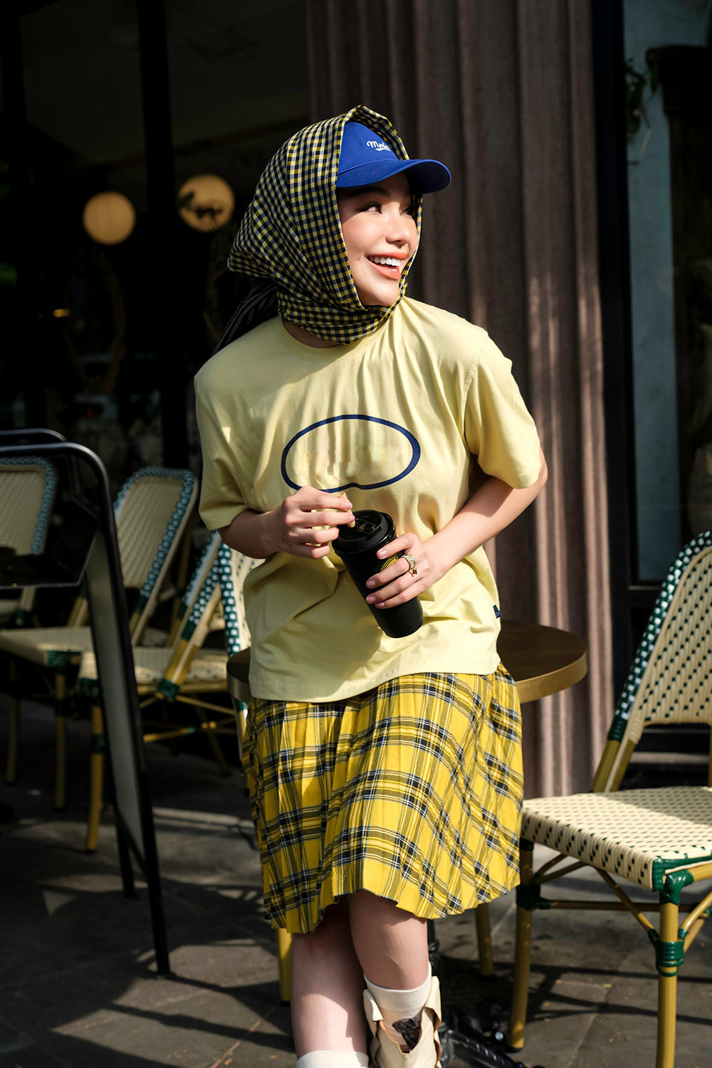 Người mẫu, ca sĩ Trà Ngọc Hằng thể hiện phong cách trẻ trung trong bộ ảnh mới, liên tục tạo điểm nhấn với chiếc khăn rằn.