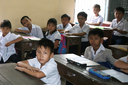 Từ lớp 3H ở tầng trệt, học sinh phải đi qua một dốc nhỏ cạnh cầu thang để ra đến bên ngoài. Một số học sinh chen lấn, bé trai ngã xuống. Ngay lập tức nhiều bàn tay nâng bé dậy. Chung quanh bé, bạn bè luôn theo dõi từng bước chân để nếu có sự cố nào xảy ra kịp thời giúp đỡ.
