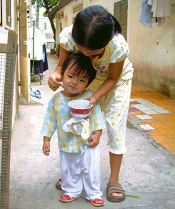 Đứa trẻ đầu là một cậu bé nghịch ngợm, hiếu động. Lẽ ra, cần sự kiên nhẫn trong dạy bảo, tuy nhiên, chị Hường cũng bất lực vì phải dồn thời gian chăm sóc đứa thứ hai, ban ngày đi làm đến 6 giờ chiều mới về.