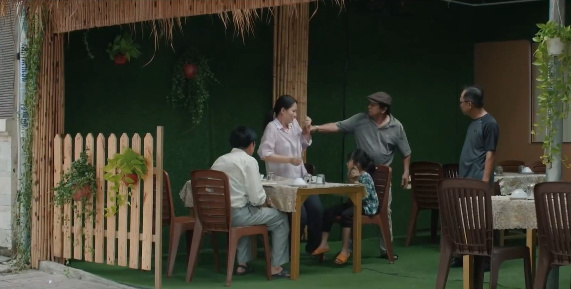 Cũng trong tập này, Hồng (Ngọc Lan) đang đi ăn cùng cha con Mô (Thái Hòa) thì bắt gặp khách quen.