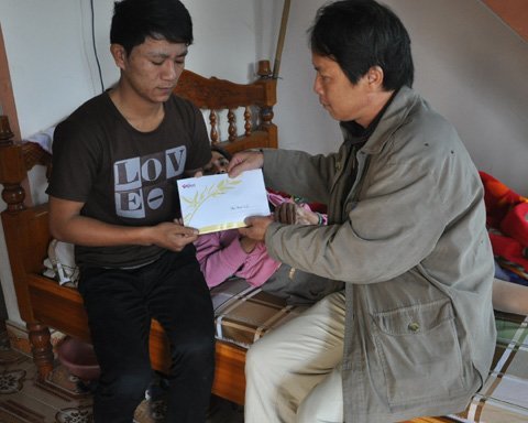 | P.V VietNamNet trao tiền của bạn đọc giúp gia đình em Thái Thanh Tùng |