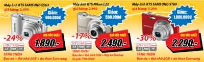 còn được tặng thêm bao da, thẻ nhớ 2GB và áo thun Samsung; khi mua máy ảnh KTS