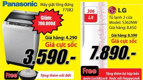 - Máy giặt lồng đứng Panasonic 7.0 kg F70B2, giá hãng 4.290.000đ, giá khuyến mại 3.590.000đ, tặng thêm nồi đất.