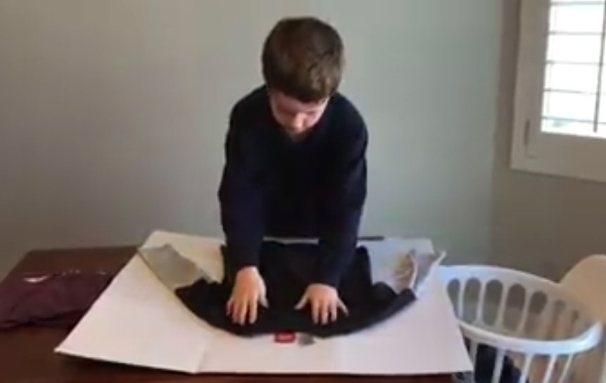 - Trong clip, bé trai thể hiện khả năng gấp quần áo rất "chuẩn". Đây là một sáng kiến độc đáo cho các phụ huynh muốn dạy con làm việc nhà