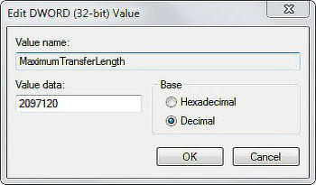Sau khi tạo xong bạn nhấp chuột vào MaximumTransferLength và điền giá trị như hình ở dưới: