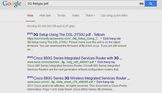 Filetype: Nếu muốn tìm tài liệu định dạng PDF về 3G, hãy nhập “3G filetype:pdf”.