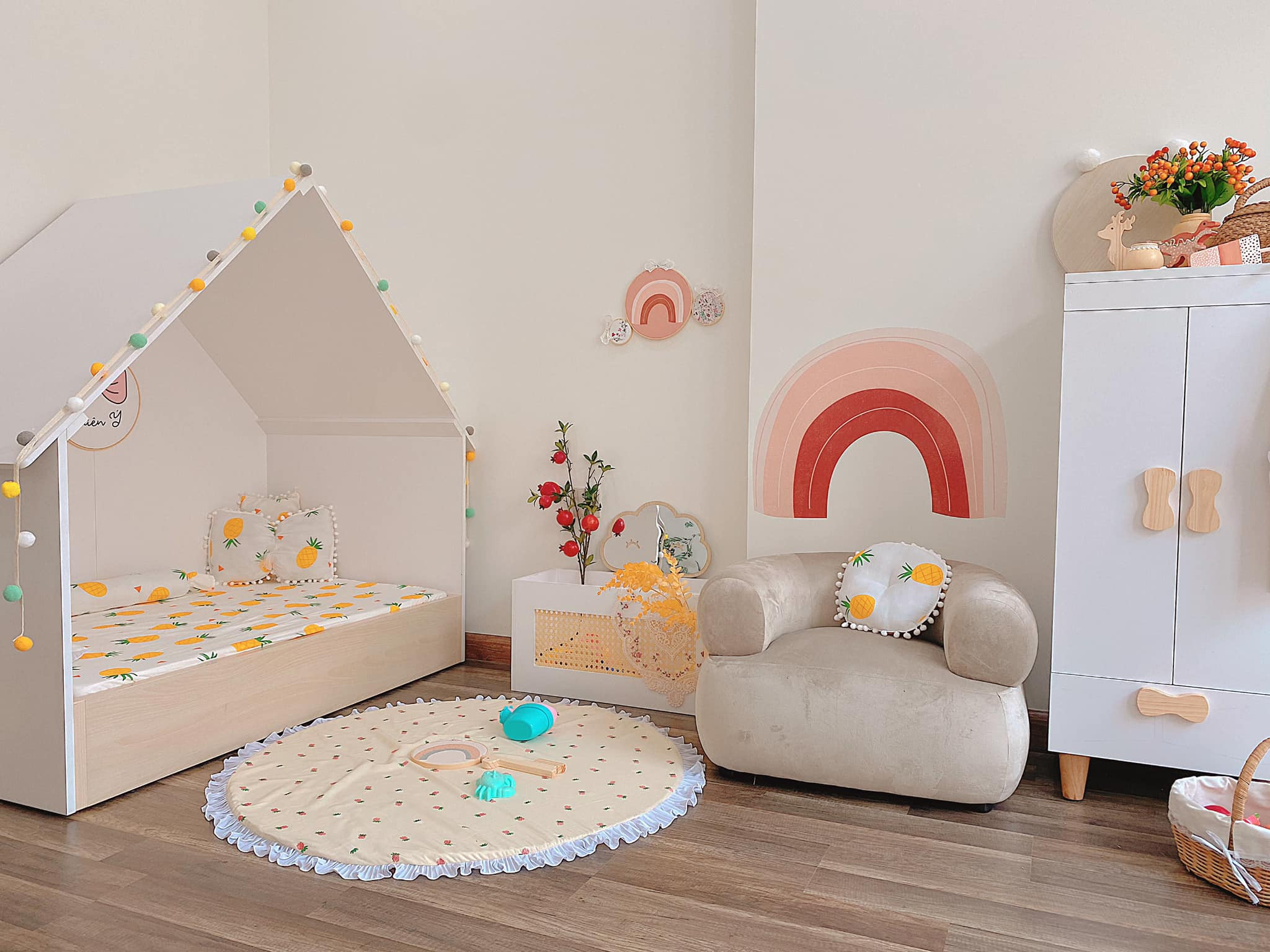 Dịch bệnh khiến công việc bị đình trệ, chị Soda đã dành thời gian nhàn rỗi đó chăm chút và bày trí lại căn phòng nhỏ, làm chỗ chơi cho 2 cô con gái. Toàn bộ nội thất được chị lựa chọn và mua ở một cơ sở kinh doanh đồ trẻ em, đồ tự lắp đặt được nên không quá vất vả.