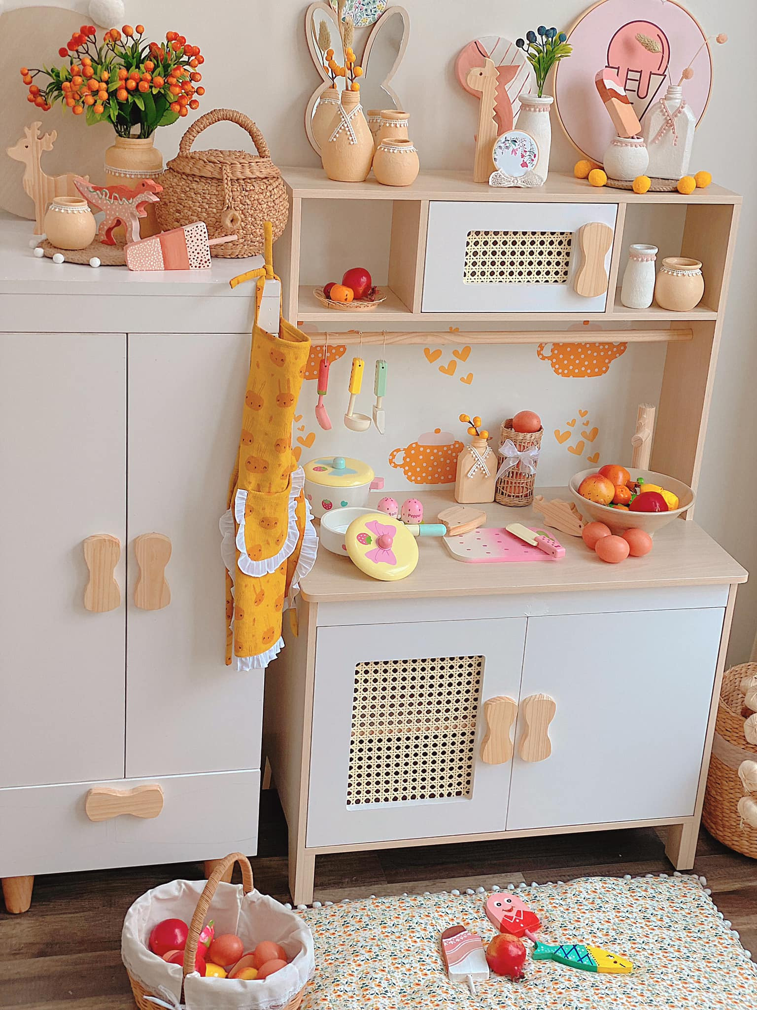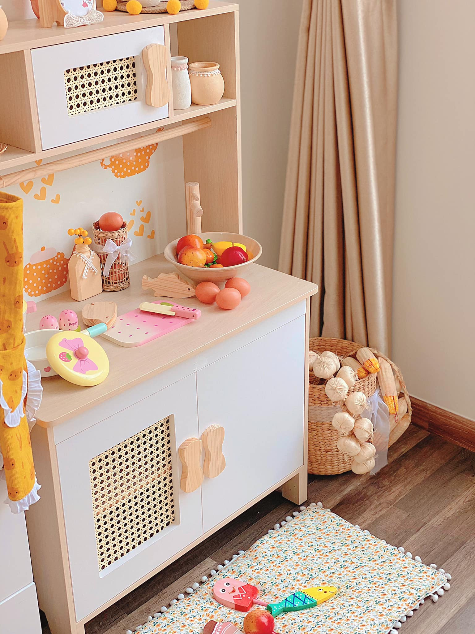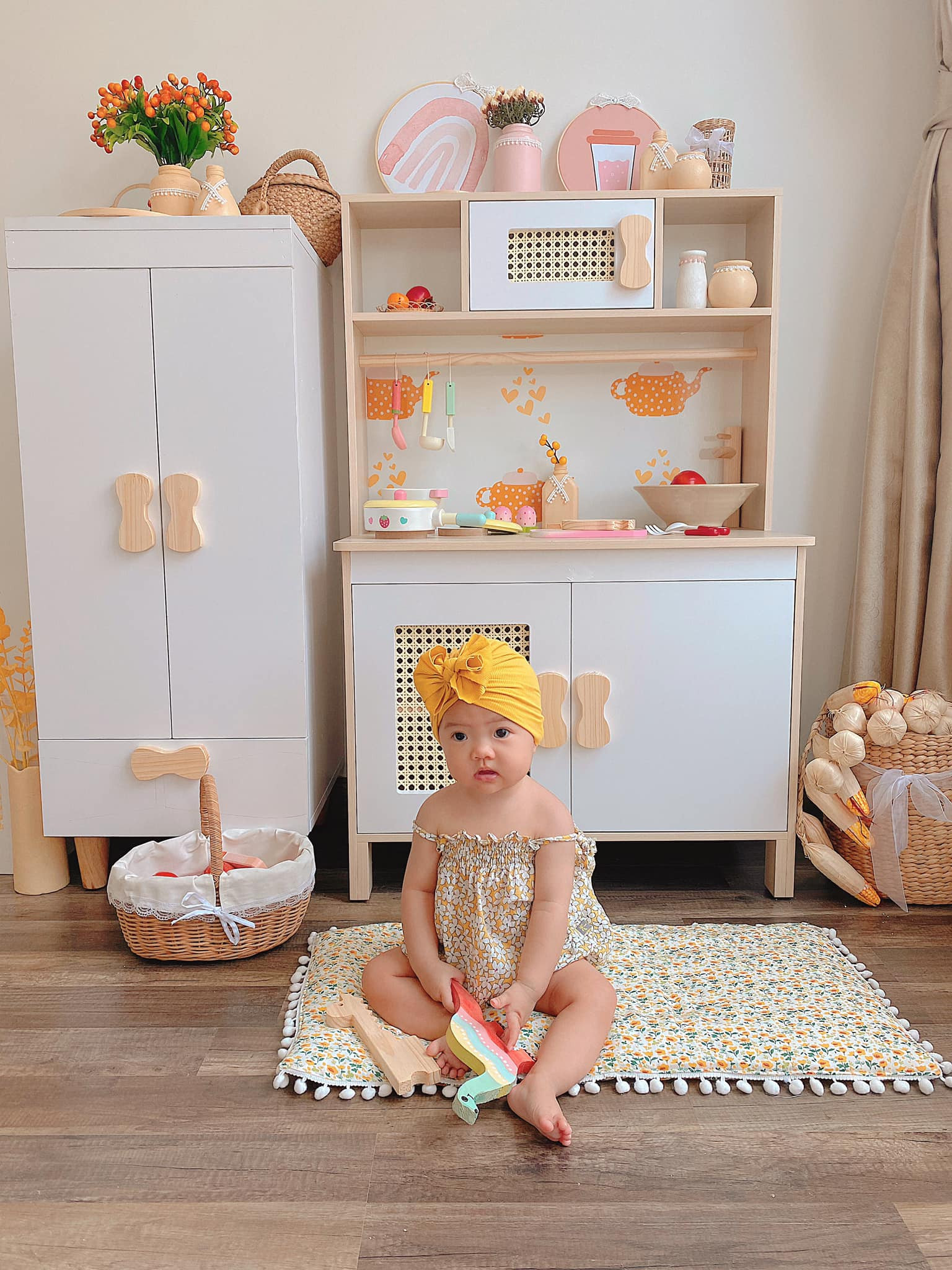 Góc nấu nướng đáng yêu của chị lớn, hiện đại và xịn đâu thua kém của mẹ. “Qua căn phòng này, tôi hi vọng mọi người có thêm sự tham khảo để làm căn phòng riêng cho bé cưng của mình”, chị nói.